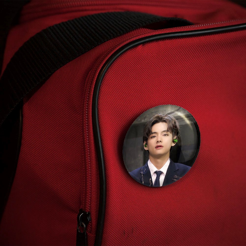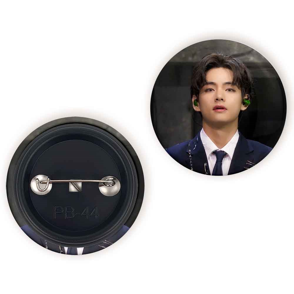 پیکسل 44 میلی متری تهیونگ وی Taehyung گروه بی تی اس BTS خندالو با روکش سلفون حرارتی مات مخملی ضدخش و قطعه پشتی رنگی تولید شده است.پلاستیکی پشت پیکسل با سوزن یک تکه ثابت و بدون لغزش و جا به جایی، ایستایی بسیار بهتری نسبت به پشتی فلزی پیکسل دارند که این مهم در تولید این محصول نیز رعایت شده است.