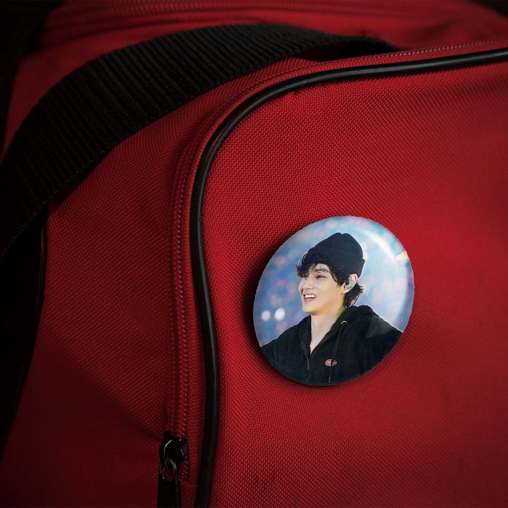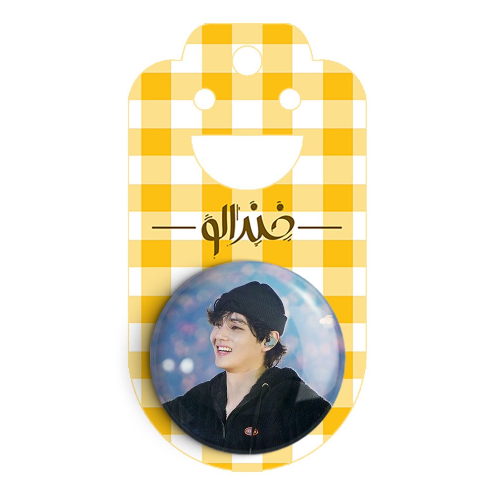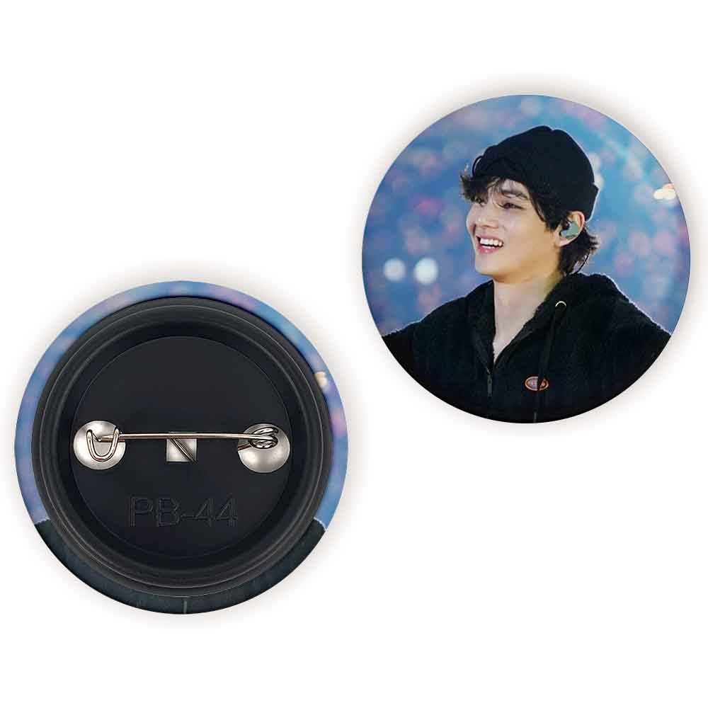 پیکسل 44 میلی متری تهیونگ وی Taehyung گروه بی تی اس BTS خندالو با روکش سلفون حرارتی مات مخملی ضدخش و قطعه پشتی رنگی تولید شده است.پلاستیکی پشت پیکسل با سوزن یک تکه ثابت و بدون لغزش و جا به جایی، ایستایی بسیار بهتری نسبت به پشتی فلزی پیکسل دارند که این مهم در تولید این محصول نیز رعایت شده است.