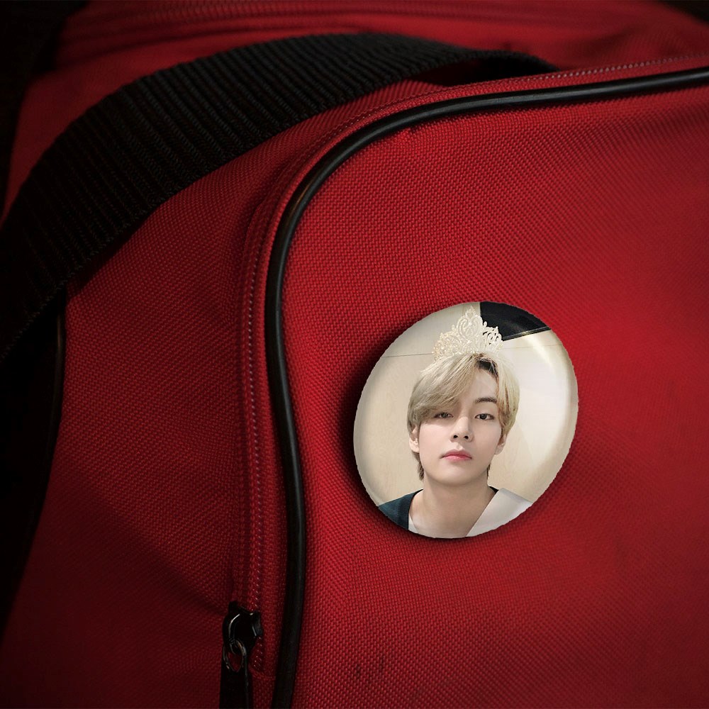 پیکسل 44 میلی متری تهیونگ وی Taehyung گروه بی تی اس BTS خندالو با روکش سلفون حرارتی مات مخملی ضدخش و قطعه پشتی رنگی تولید شده است.پلاستیکی پشت پیکسل با سوزن یک تکه ثابت و بدون لغزش و جا به جایی، ایستایی بسیار بهتری نسبت به پشتی فلزی پیکسل دارند که این مهم در تولید این محصول نیز رعایت شده است.
