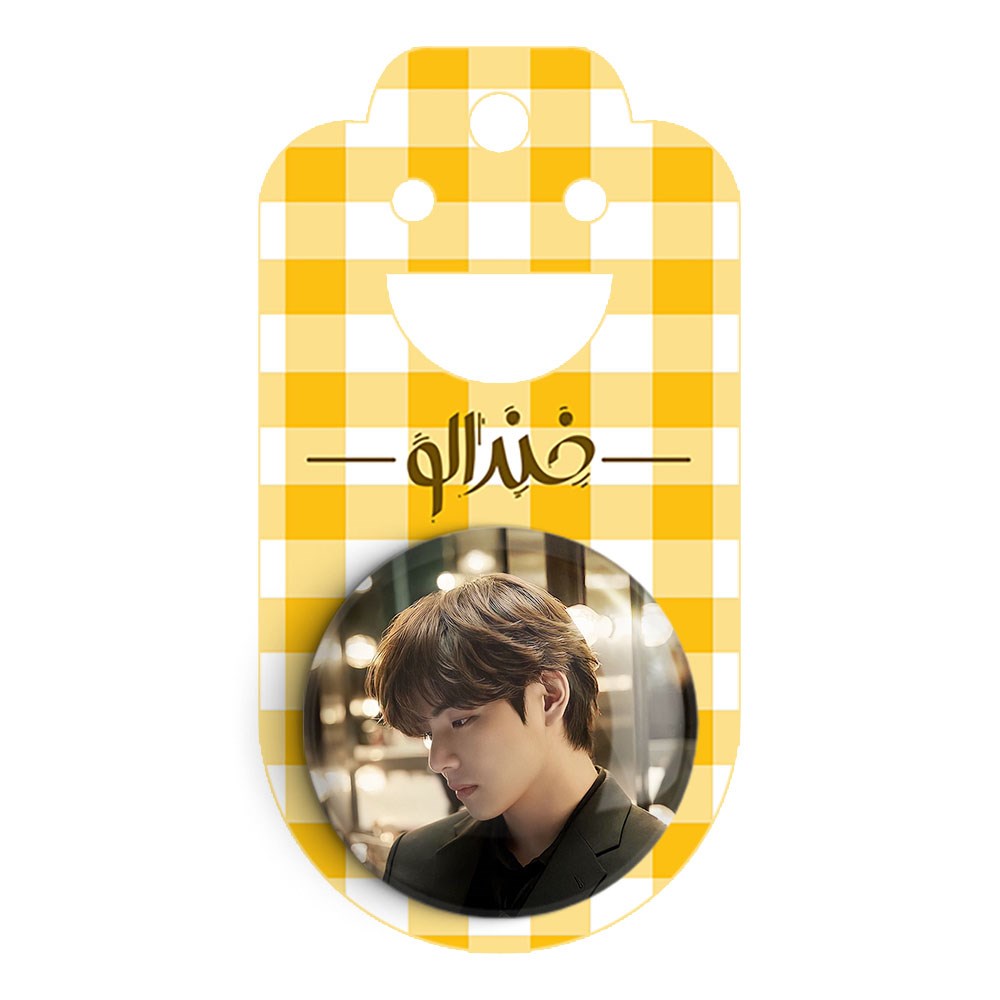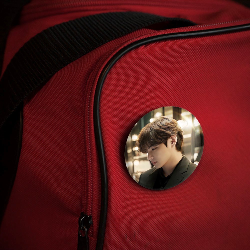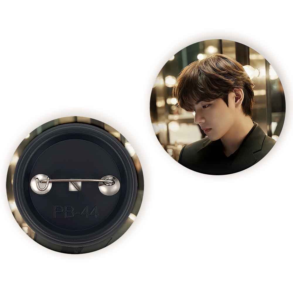 پیکسل 44 میلی متری تهیونگ وی Taehyung گروه بی تی اس BTS خندالو با روکش سلفون حرارتی مات مخملی ضدخش و قطعه پشتی رنگی تولید شده است.پلاستیکی پشت پیکسل با سوزن یک تکه ثابت و بدون لغزش و جا به جایی، ایستایی بسیار بهتری نسبت به پشتی فلزی پیکسل دارند که این مهم در تولید این محصول نیز رعایت شده است.