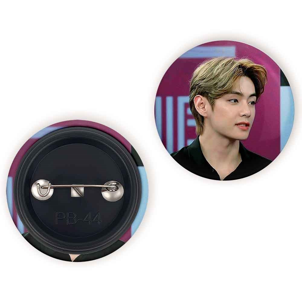 پیکسل 44 میلی متری تهیونگ وی Taehyung گروه بی تی اس BTS خندالو با روکش سلفون حرارتی مات مخملی ضدخش و قطعه پشتی رنگی تولید شده است.پلاستیکی پشت پیکسل با سوزن یک تکه ثابت و بدون لغزش و جا به جایی، ایستایی بسیار بهتری نسبت به پشتی فلزی پیکسل دارند که این مهم در تولید این محصول نیز رعایت شده است.