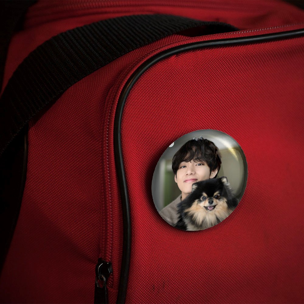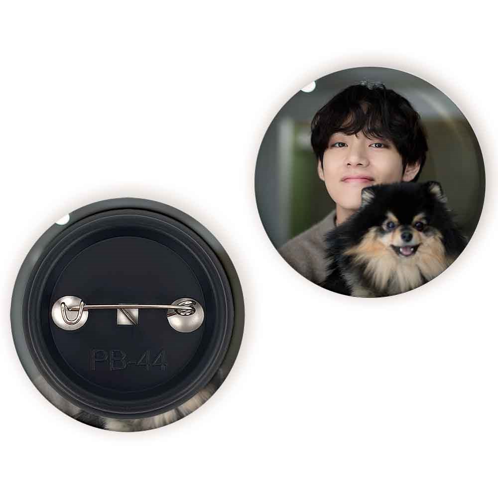 پیکسل 44 میلی متری تهیونگ وی Taehyung گروه بی تی اس BTS خندالو با روکش سلفون حرارتی مات مخملی ضدخش و قطعه پشتی رنگی تولید شده است.پلاستیکی پشت پیکسل با سوزن یک تکه ثابت و بدون لغزش و جا به جایی، ایستایی بسیار بهتری نسبت به پشتی فلزی پیکسل دارند که این مهم در تولید این محصول نیز رعایت شده است.