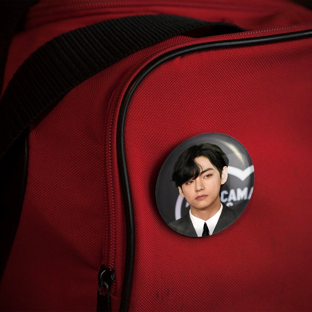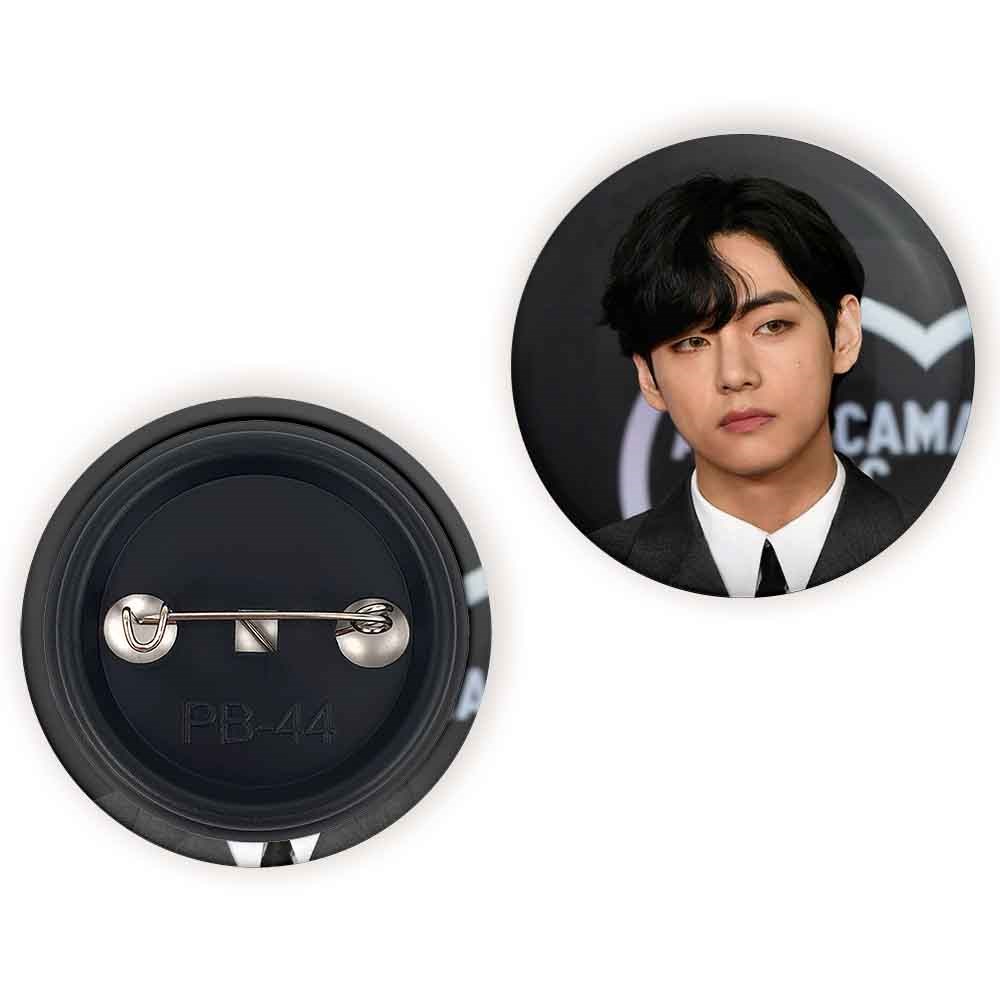 پیکسل 44 میلی متری تهیونگ وی Taehyung گروه بی تی اس BTS خندالو با روکش سلفون حرارتی مات مخملی ضدخش و قطعه پشتی رنگی تولید شده است.پلاستیکی پشت پیکسل با سوزن یک تکه ثابت و بدون لغزش و جا به جایی، ایستایی بسیار بهتری نسبت به پشتی فلزی پیکسل دارند که این مهم در تولید این محصول نیز رعایت شده است.