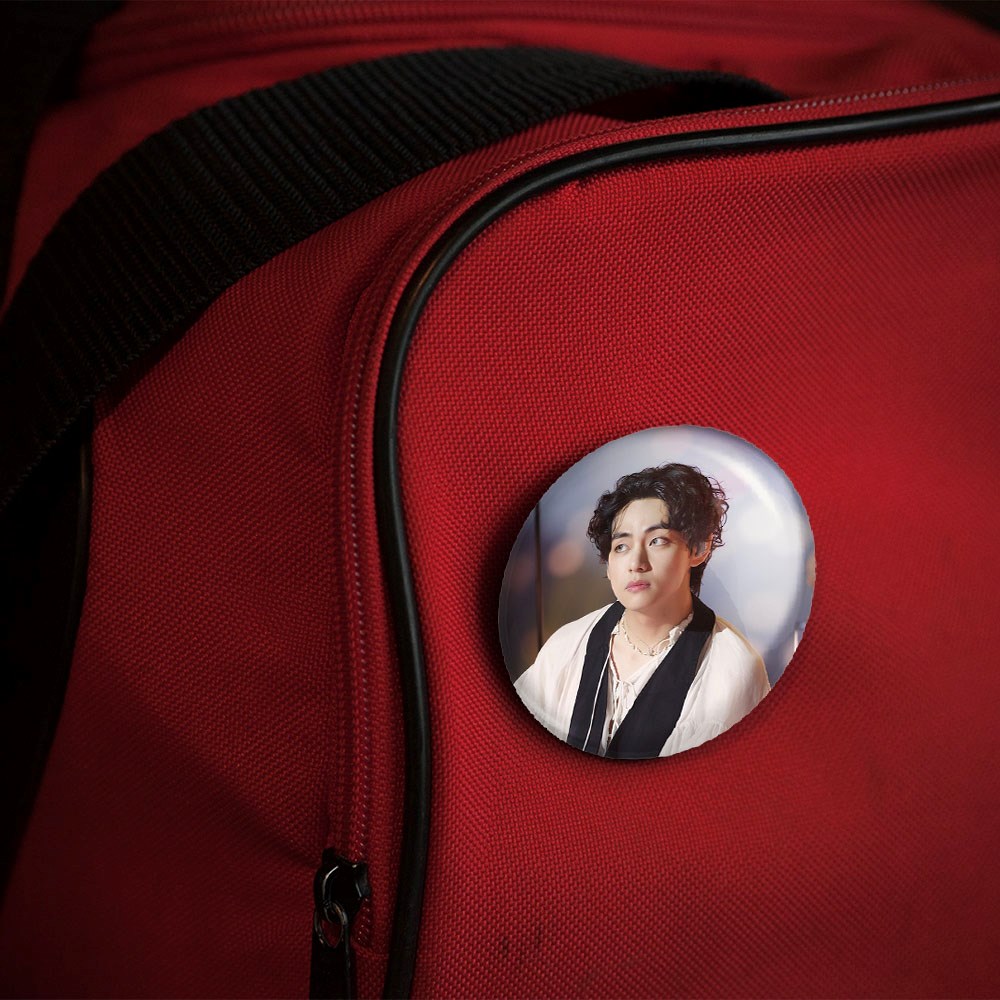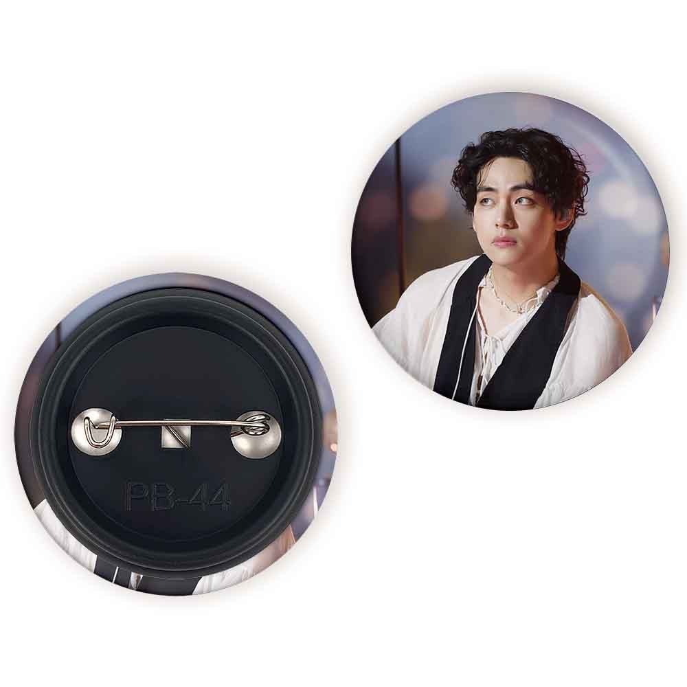 پیکسل 44 میلی متری تهیونگ وی Taehyung گروه بی تی اس BTS خندالو با روکش سلفون حرارتی مات مخملی ضدخش و قطعه پشتی رنگی تولید شده است.پلاستیکی پشت پیکسل با سوزن یک تکه ثابت و بدون لغزش و جا به جایی، ایستایی بسیار بهتری نسبت به پشتی فلزی پیکسل دارند که این مهم در تولید این محصول نیز رعایت شده است.
