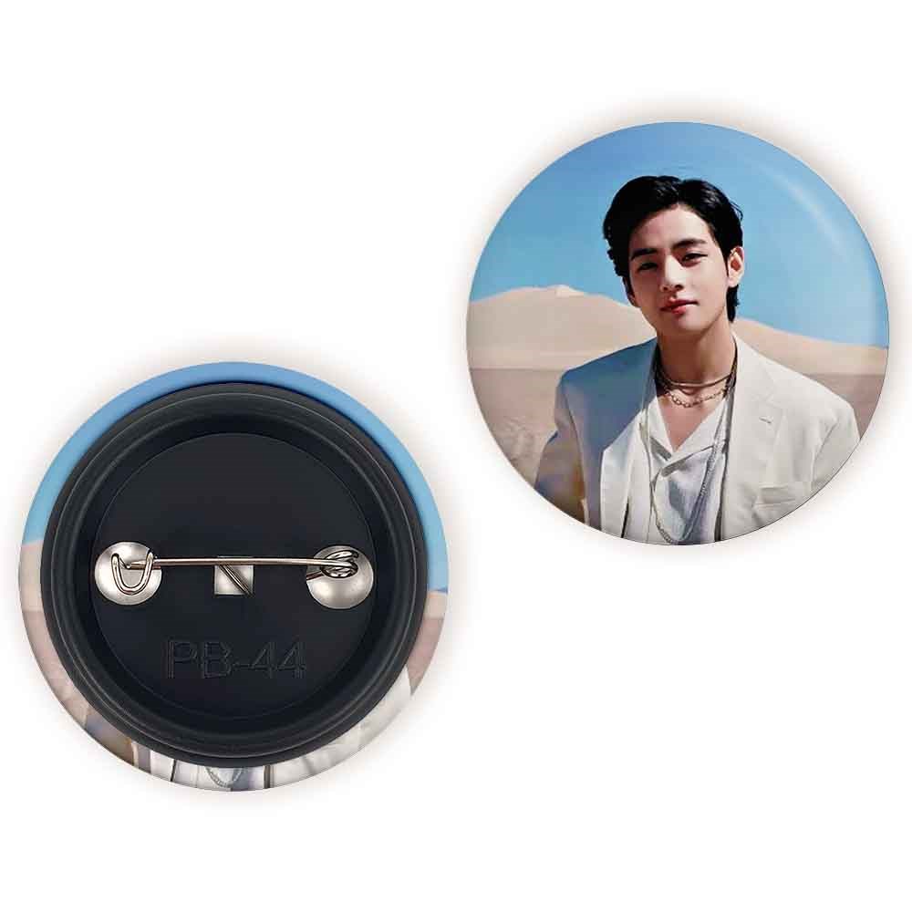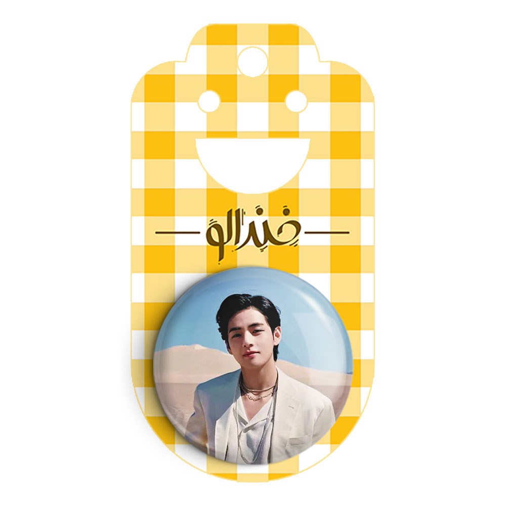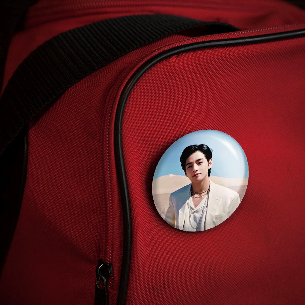 پیکسل 44 میلی متری تهیونگ وی Taehyung گروه بی تی اس BTS خندالو با روکش سلفون حرارتی مات مخملی ضدخش و قطعه پشتی رنگی تولید شده است.پلاستیکی پشت پیکسل با سوزن یک تکه ثابت و بدون لغزش و جا به جایی، ایستایی بسیار بهتری نسبت به پشتی فلزی پیکسل دارند که این مهم در تولید این محصول نیز رعایت شده است.