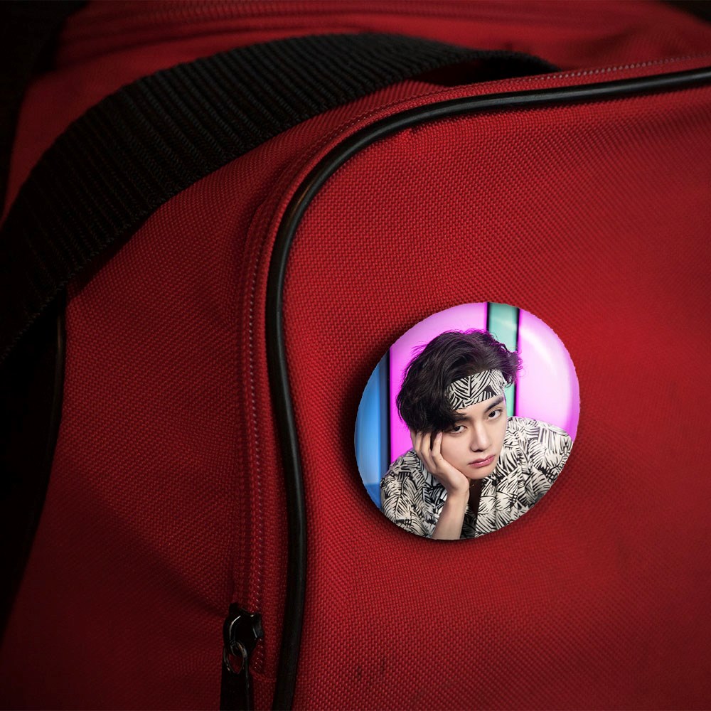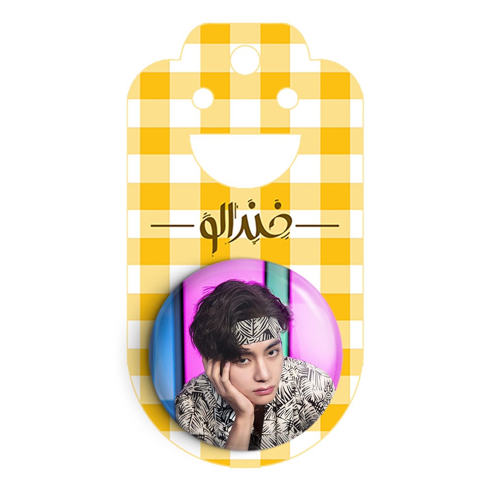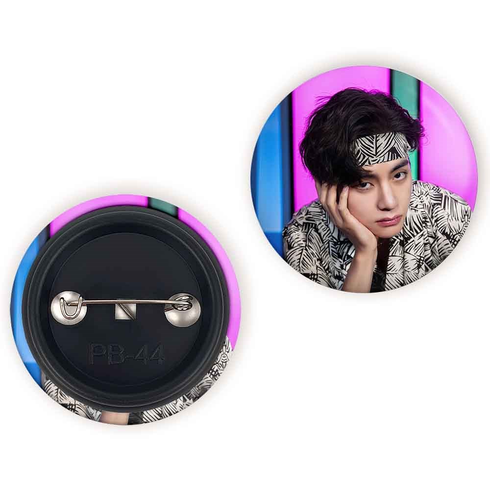 پیکسل 44 میلی متری تهیونگ وی Taehyung گروه بی تی اس BTS خندالو با روکش سلفون حرارتی مات مخملی ضدخش و قطعه پشتی رنگی تولید شده است.پلاستیکی پشت پیکسل با سوزن یک تکه ثابت و بدون لغزش و جا به جایی، ایستایی بسیار بهتری نسبت به پشتی فلزی پیکسل دارند که این مهم در تولید این محصول نیز رعایت شده است.