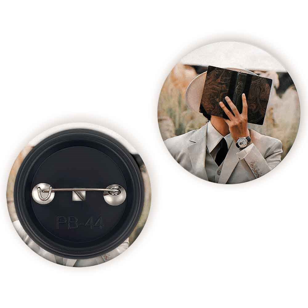 پیکسل 44 میلی متری تهیونگ وی Taehyung گروه بی تی اس BTS خندالو با روکش سلفون حرارتی مات مخملی ضدخش و قطعه پشتی رنگی تولید شده است.پلاستیکی پشت پیکسل با سوزن یک تکه ثابت و بدون لغزش و جا به جایی، ایستایی بسیار بهتری نسبت به پشتی فلزی پیکسل دارند که این مهم در تولید این محصول نیز رعایت شده است.