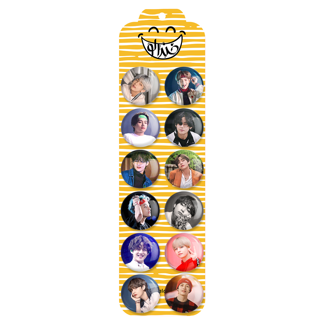 پک 12 عددی پیکسل خندالو طرح تهیونگ وی (Teahyung) بی تی اس BTS با روکش سلفون حرارتی براق ضدخش و قطعه پشتی رنگی تولید شده است. قطعات پشتی از میان 6 رنگ سفید، مشکی، صورتی، زرد، آبی و قرمز که با توجه به نوع و رنگبندی طرح روی پیکسل انتخاب شده اند تولید می شود و در هر بسته بندی مطابق عکس محصول می باشد. قطعات پلاستیکی پشت پیکسل با سوزن یک تکه ثابت و بدون لغزش و جا به جایی، ایستایی بسیار بهتری نسبت به پشتی فلزی پیکسل دارند که این مهم در تولید این محصول نیز رعایت شده است.