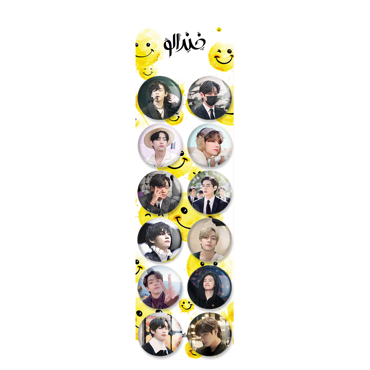 پک 12 عددی پیکسل خندالو طرح تهیونگ وی (Teahyung) بی تی اس BTS با روکش سلفون حرارتی براق ضدخش و قطعه پشتی رنگی تولید شده است. قطعات پشتی از میان 6 رنگ سفید، مشکی، صورتی، زرد، آبی و قرمز که با توجه به نوع و رنگبندی طرح روی پیکسل انتخاب شده اند تولید می شود و در هر بسته بندی مطابق عکس محصول می باشد. قطعات پلاستیکی پشت پیکسل با سوزن یک تکه ثابت و بدون لغزش و جا به جایی، ایستایی بسیار بهتری نسبت به پشتی فلزی پیکسل دارند که این مهم در تولید این محصول نیز رعایت شده است.
