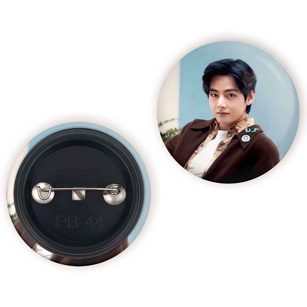 پیکسل 44 میلی متری تهیونگ وی Teahyung گروه بی تی اس BTS خندالو با روکش سلفون حرارتی مات مخملی ضدخش و قطعه پشتی رنگی تولید شده است.پلاستیکی پشت پیکسل با سوزن یک تکه ثابت و بدون لغزش و جا به جایی، ایستایی بسیار بهتری نسبت به پشتی فلزی پیکسل دارند که این مهم در تولید این محصول نیز رعایت شده است.