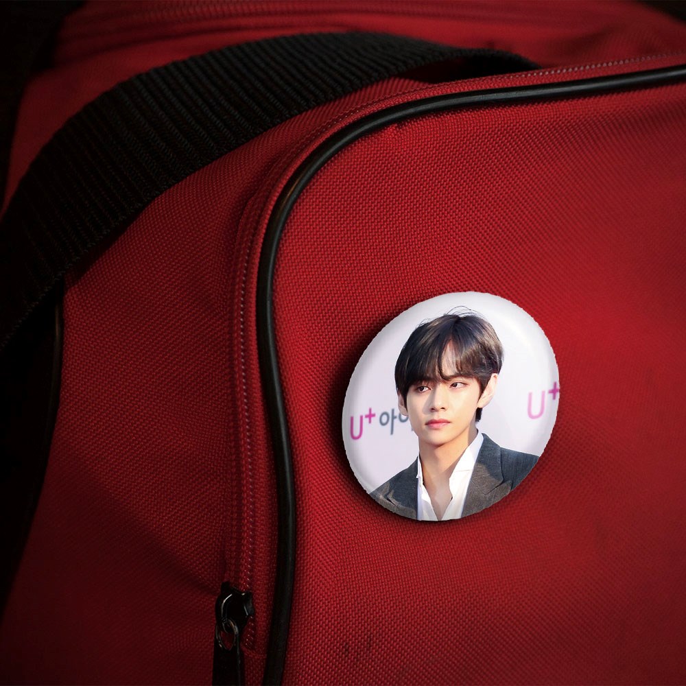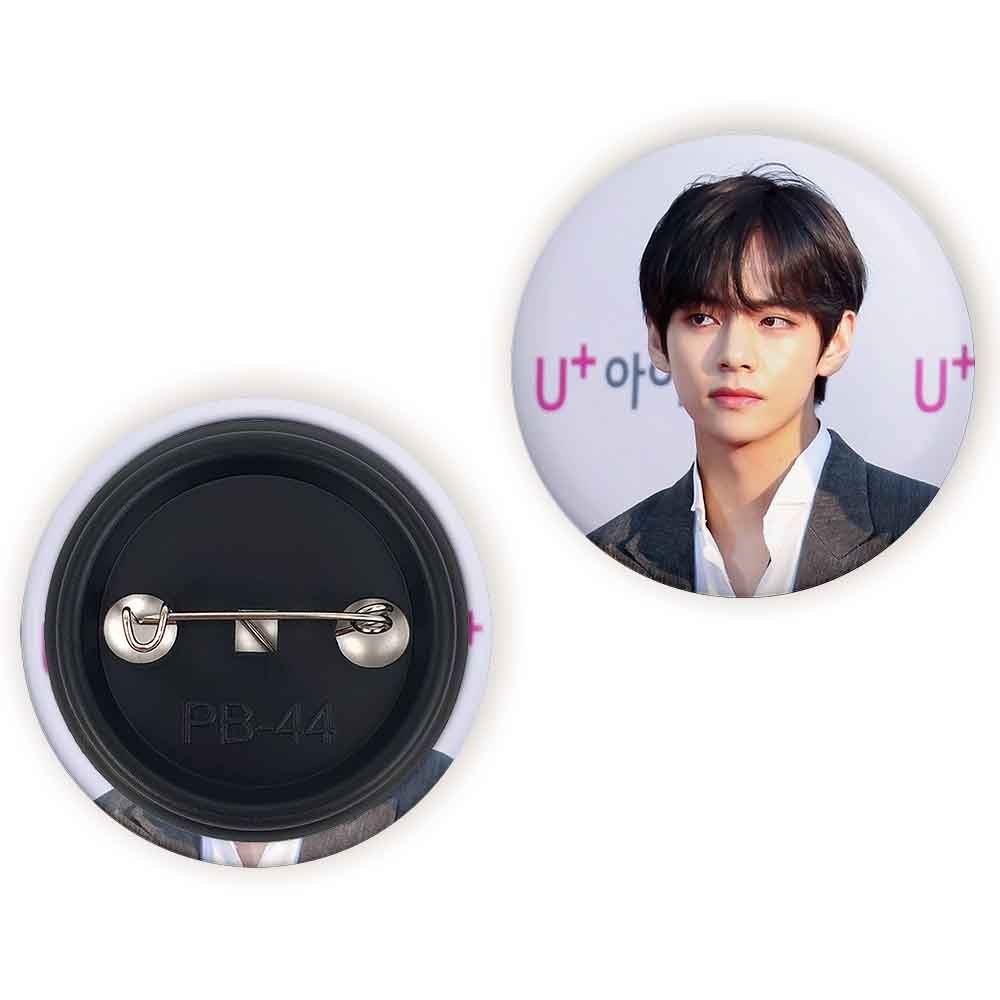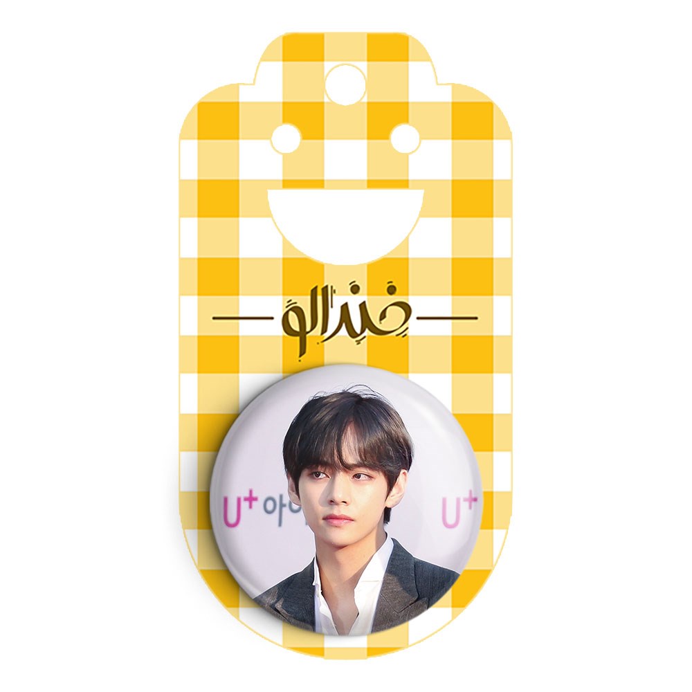 پیکسل 44 میلی متری تهیونگ وی Teahyung گروه بی تی اس BTS خندالو با روکش سلفون حرارتی مات مخملی ضدخش و قطعه پشتی رنگی تولید شده است.پلاستیکی پشت پیکسل با سوزن یک تکه ثابت و بدون لغزش و جا به جایی، ایستایی بسیار بهتری نسبت به پشتی فلزی پیکسل دارند که این مهم در تولید این محصول نیز رعایت شده است.