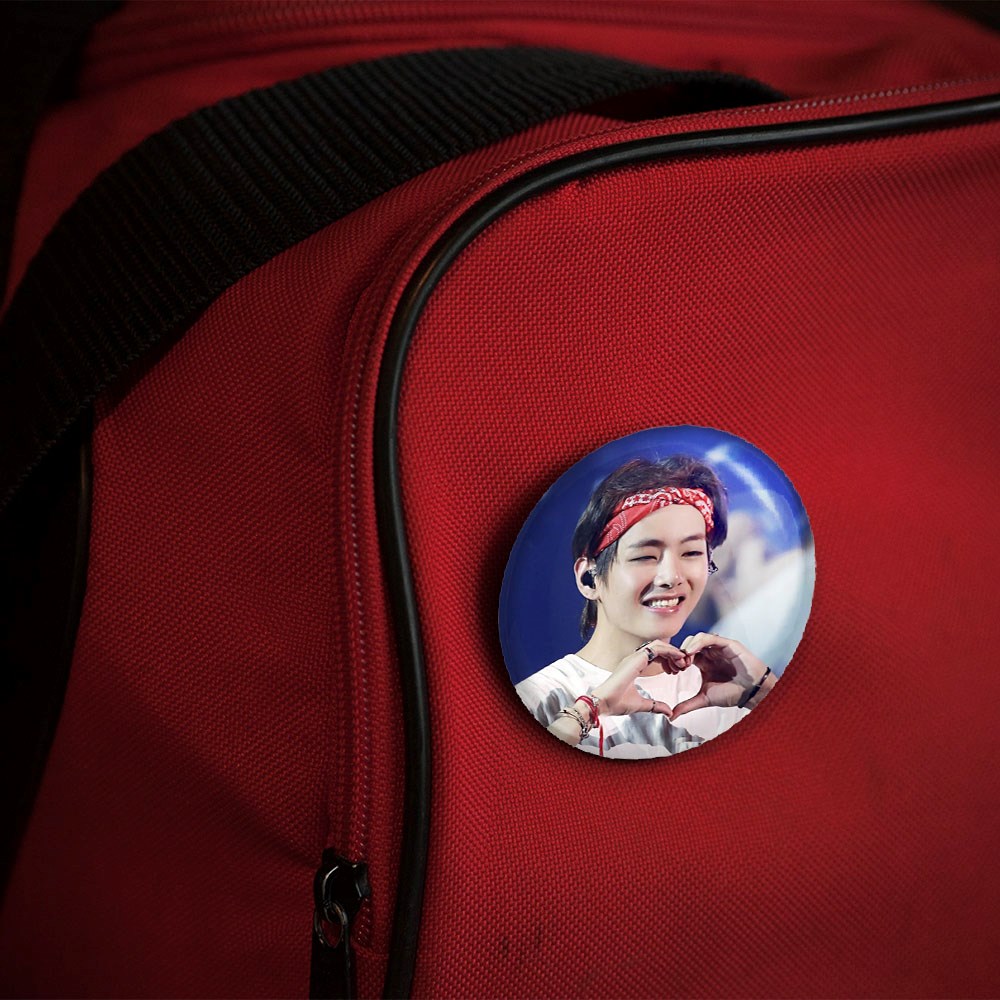 پیکسل 44 میلی متری تهیونگ وی Teahyung گروه بی تی اس BTS خندالو با روکش سلفون حرارتی مات مخملی ضدخش و قطعه پشتی رنگی تولید شده است.پلاستیکی پشت پیکسل با سوزن یک تکه ثابت و بدون لغزش و جا به جایی، ایستایی بسیار بهتری نسبت به پشتی فلزی پیکسل دارند که این مهم در تولید این محصول نیز رعایت شده است.