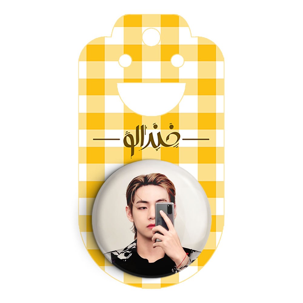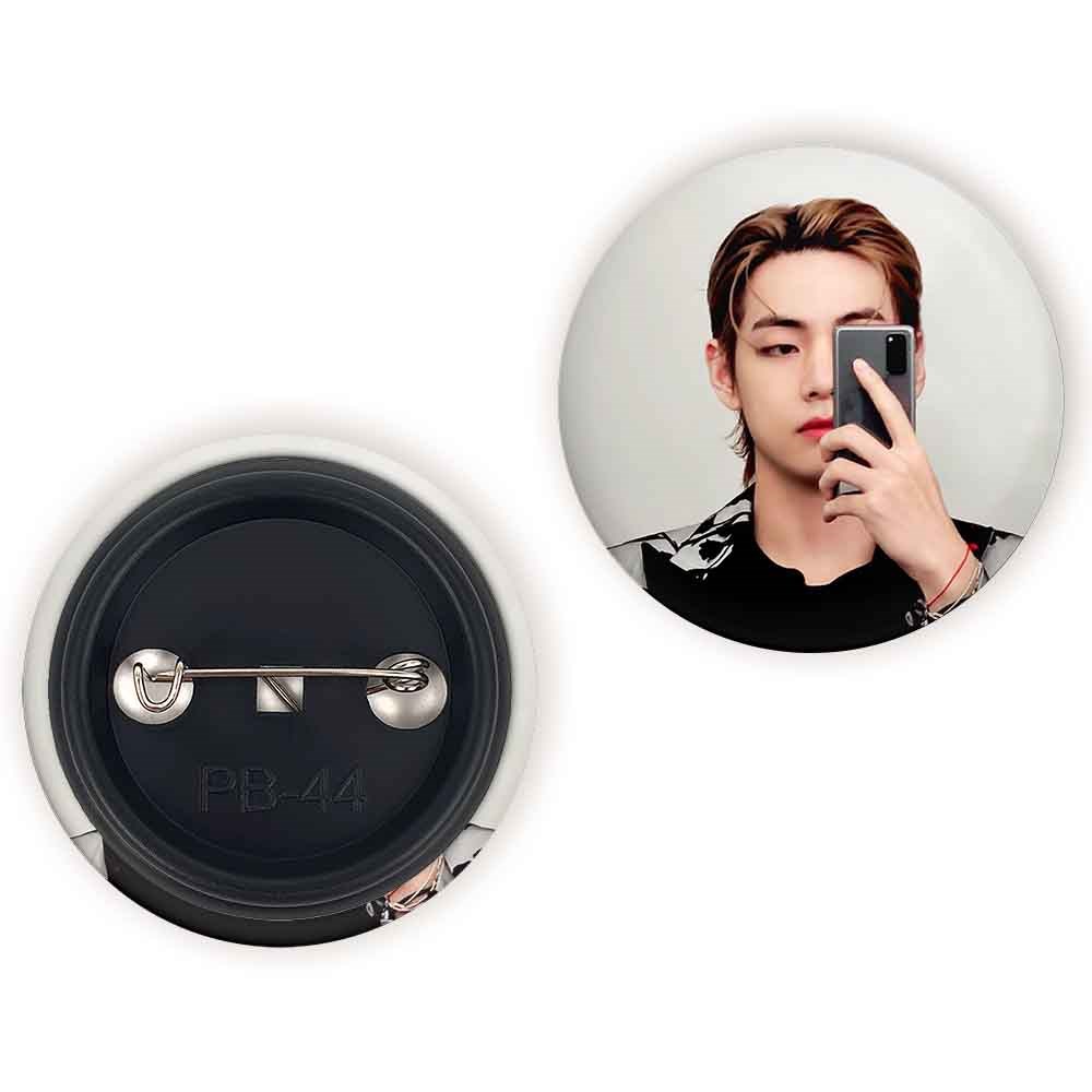 پیکسل 44 میلی متری تهیونگ وی Teahyung گروه بی تی اس BTS خندالو با روکش سلفون حرارتی مات مخملی ضدخش و قطعه پشتی رنگی تولید شده است.پلاستیکی پشت پیکسل با سوزن یک تکه ثابت و بدون لغزش و جا به جایی، ایستایی بسیار بهتری نسبت به پشتی فلزی پیکسل دارند که این مهم در تولید این محصول نیز رعایت شده است.