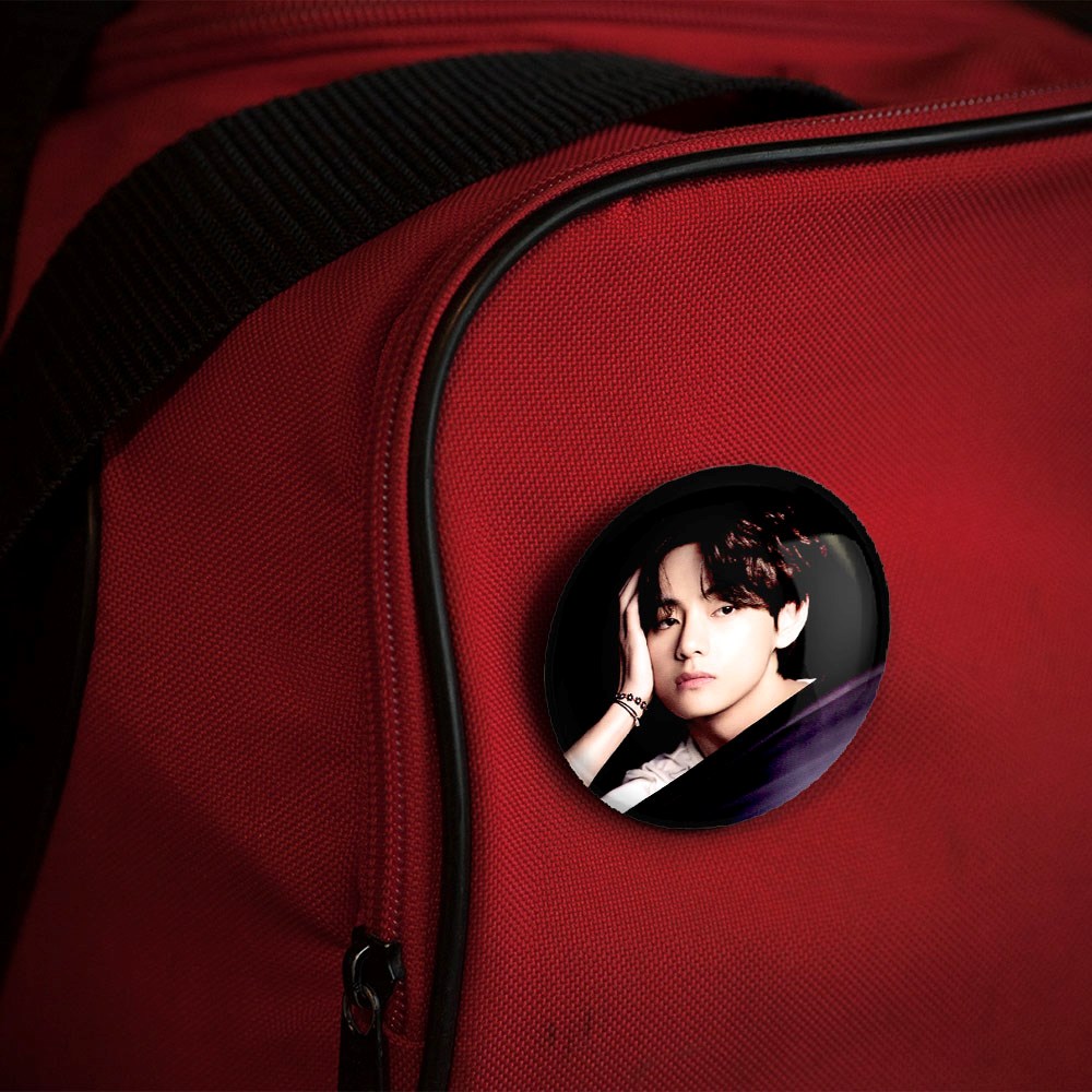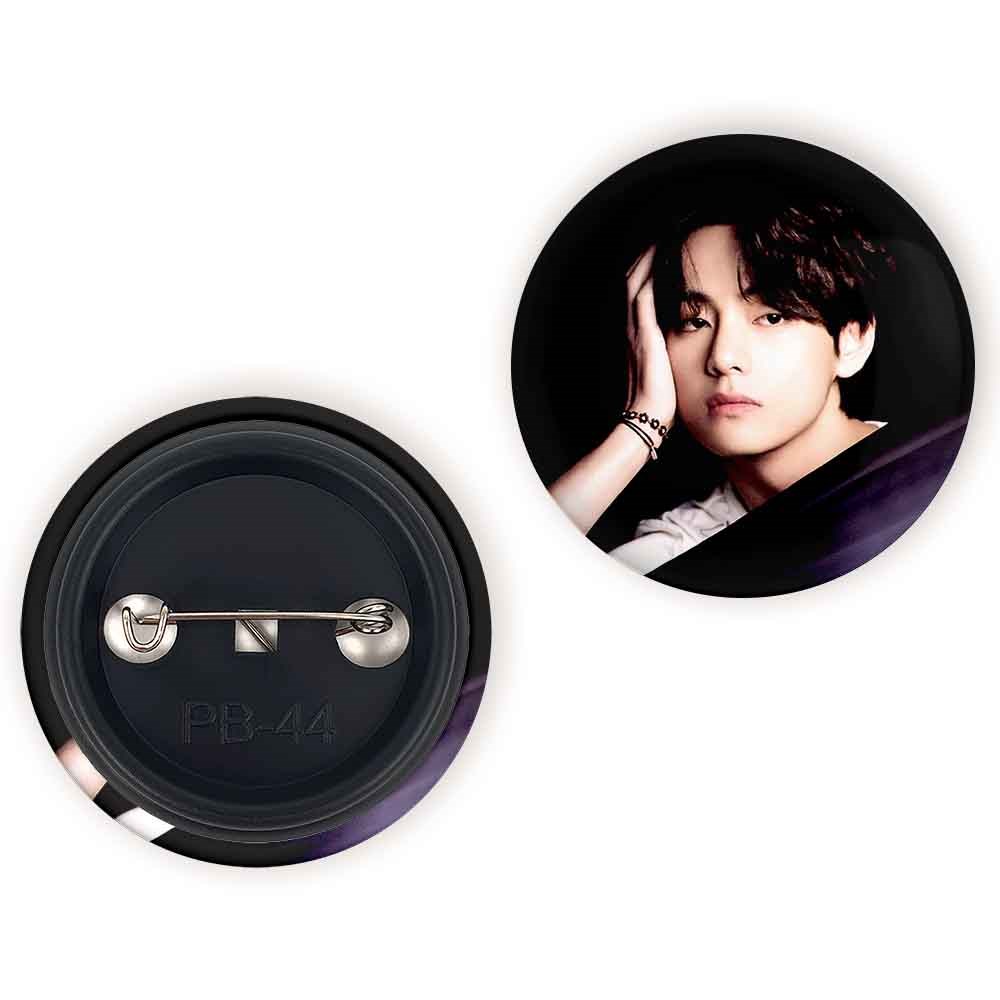 پیکسل 44 میلی متری تهیونگ وی Teahyung گروه بی تی اس BTS خندالو با روکش سلفون حرارتی مات مخملی ضدخش و قطعه پشتی رنگی تولید شده است.پلاستیکی پشت پیکسل با سوزن یک تکه ثابت و بدون لغزش و جا به جایی، ایستایی بسیار بهتری نسبت به پشتی فلزی پیکسل دارند که این مهم در تولید این محصول نیز رعایت شده است.