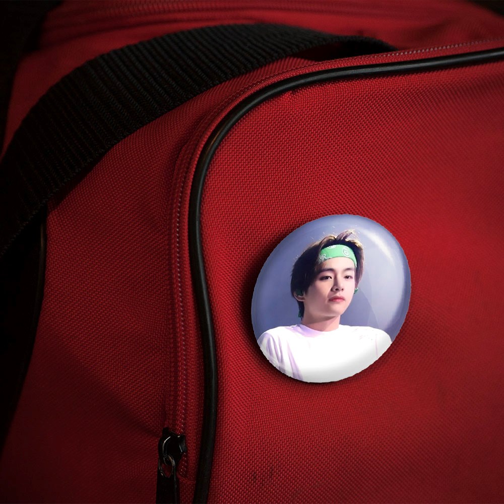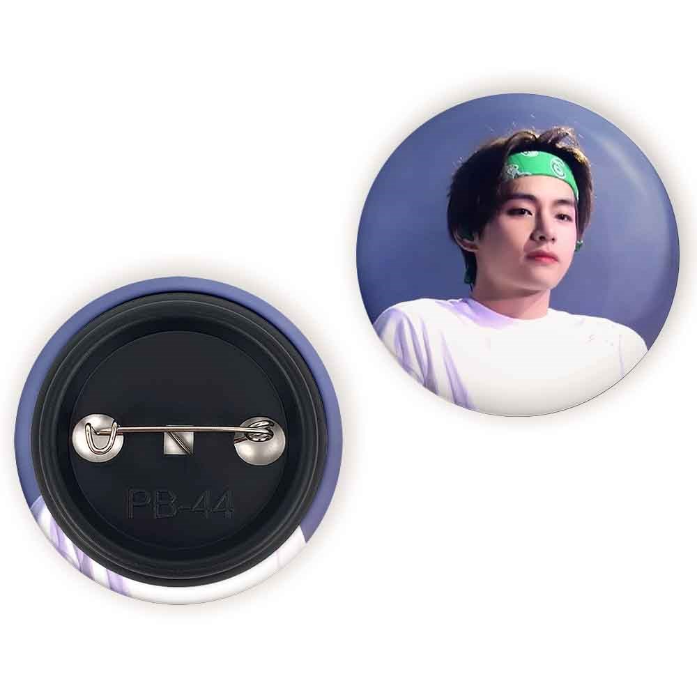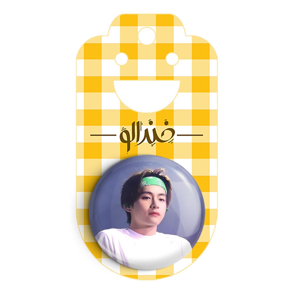 پیکسل 44 میلی متری تهیونگ وی Teahyung گروه بی تی اس BTS خندالو با روکش سلفون حرارتی مات مخملی ضدخش و قطعه پشتی رنگی تولید شده است.پلاستیکی پشت پیکسل با سوزن یک تکه ثابت و بدون لغزش و جا به جایی، ایستایی بسیار بهتری نسبت به پشتی فلزی پیکسل دارند که این مهم در تولید این محصول نیز رعایت شده است.