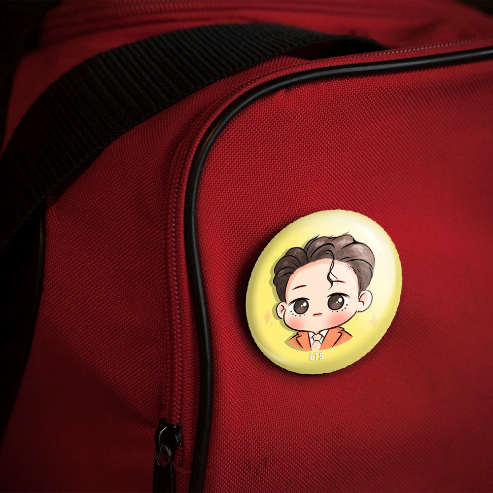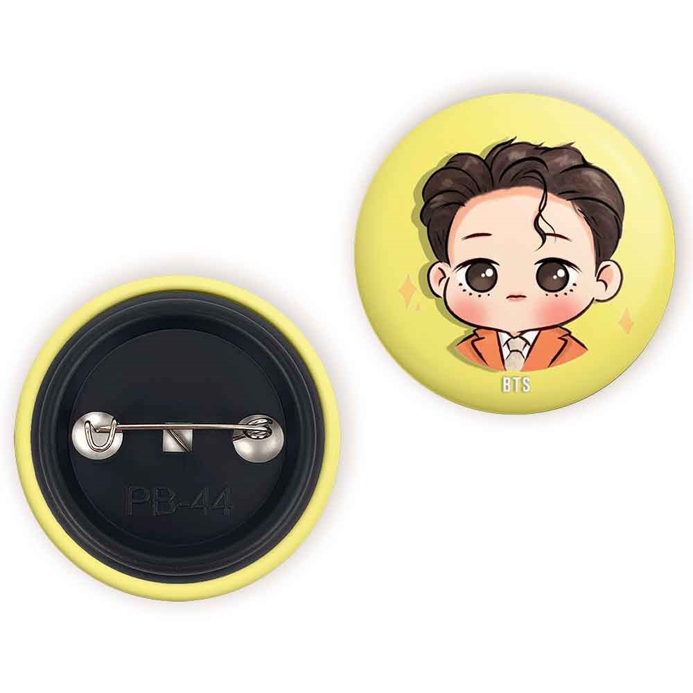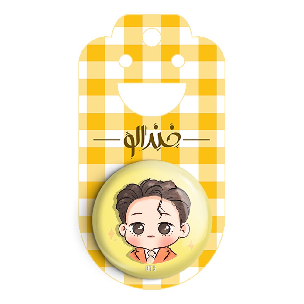 پیکسل 44 میلی متری تهیونگ وی Teahyung گروه بی تی اس BTS خندالو با روکش سلفون حرارتی مات مخملی ضدخش و قطعه پشتی رنگی تولید شده است.پلاستیکی پشت پیکسل با سوزن یک تکه ثابت و بدون لغزش و جا به جایی، ایستایی بسیار بهتری نسبت به پشتی فلزی پیکسل دارند که این مهم در تولید این محصول نیز رعایت شده است.