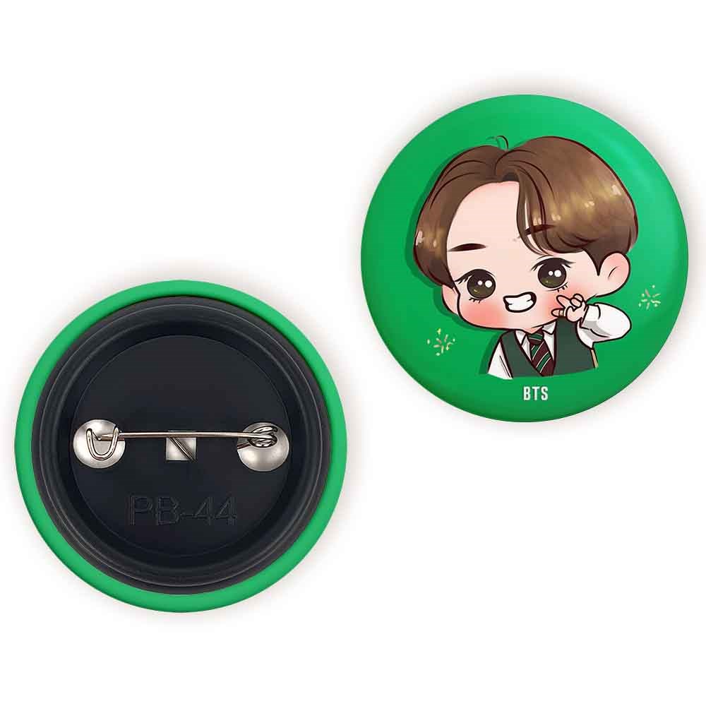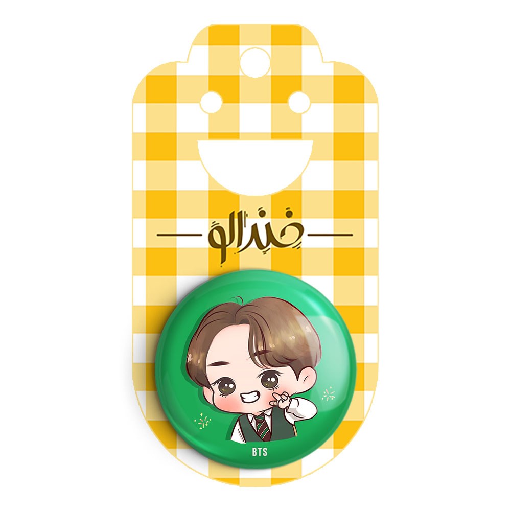 پیکسل 44 میلی متری تهیونگ وی Teahyung گروه بی تی اس BTS خندالو با روکش سلفون حرارتی مات مخملی ضدخش و قطعه پشتی رنگی تولید شده است.پلاستیکی پشت پیکسل با سوزن یک تکه ثابت و بدون لغزش و جا به جایی، ایستایی بسیار بهتری نسبت به پشتی فلزی پیکسل دارند که این مهم در تولید این محصول نیز رعایت شده است.