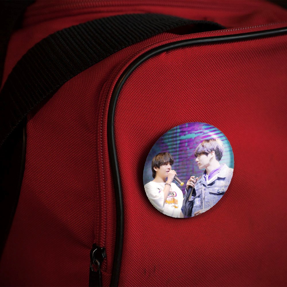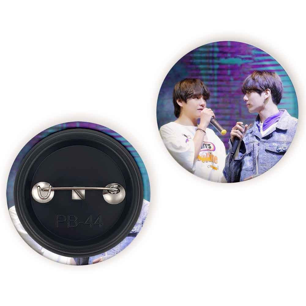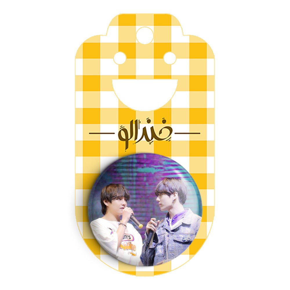 پیکسل 44 میلی متری تهیونگ و جونگ کوک ویکوک گروه بی تی اس BTS خندالو با روکش سلفون حرارتی مات مخملی ضدخش و قطعه پشتی رنگی تولید شده است.پلاستیکی پشت پیکسل با سوزن یک تکه ثابت و بدون لغزش و جا به جایی، ایستایی بسیار بهتری نسبت به پشتی فلزی پیکسل دارند که این مهم در تولید این محصول نیز رعایت شده است.