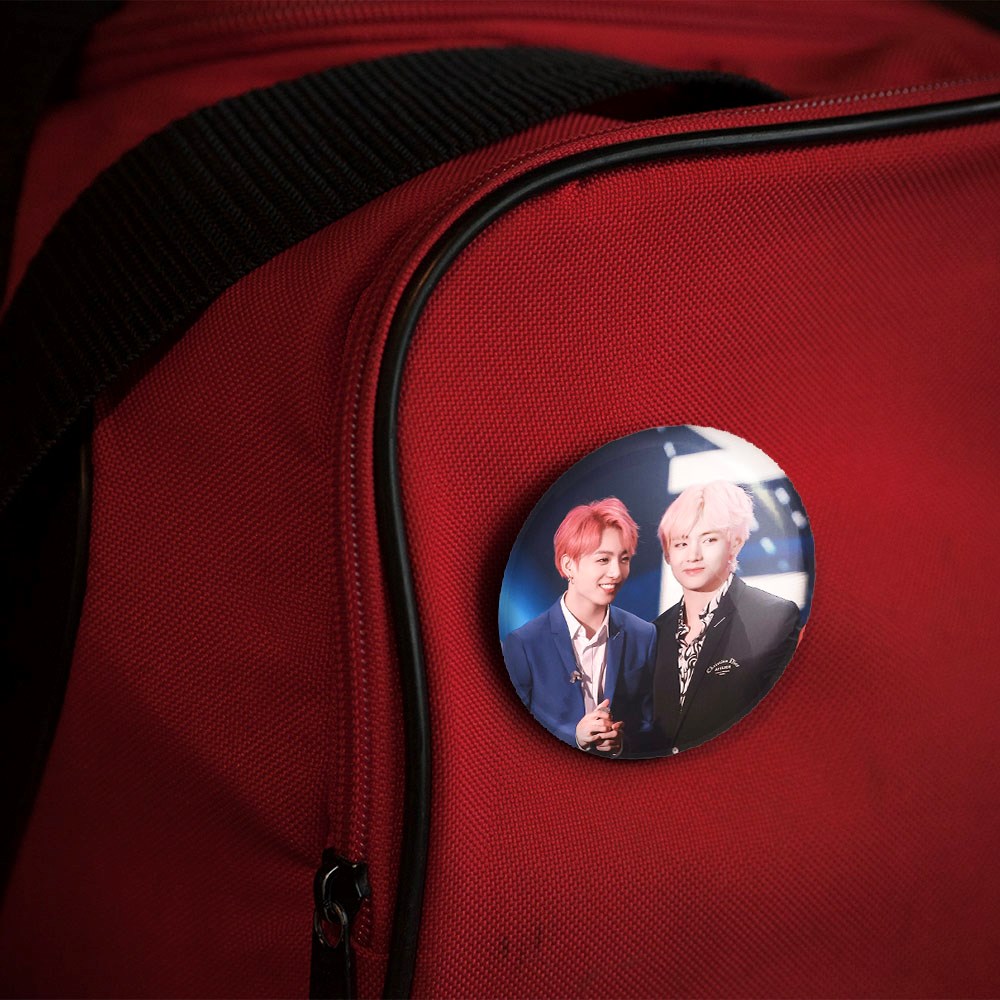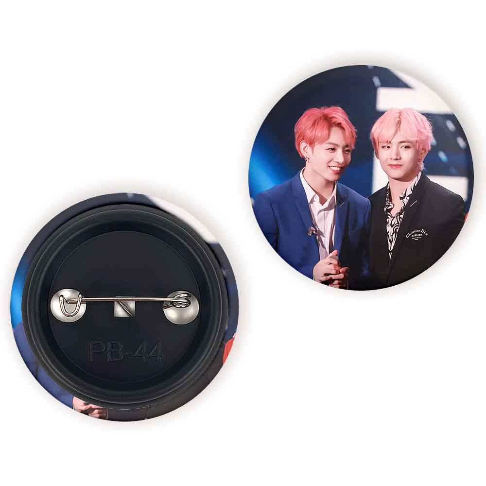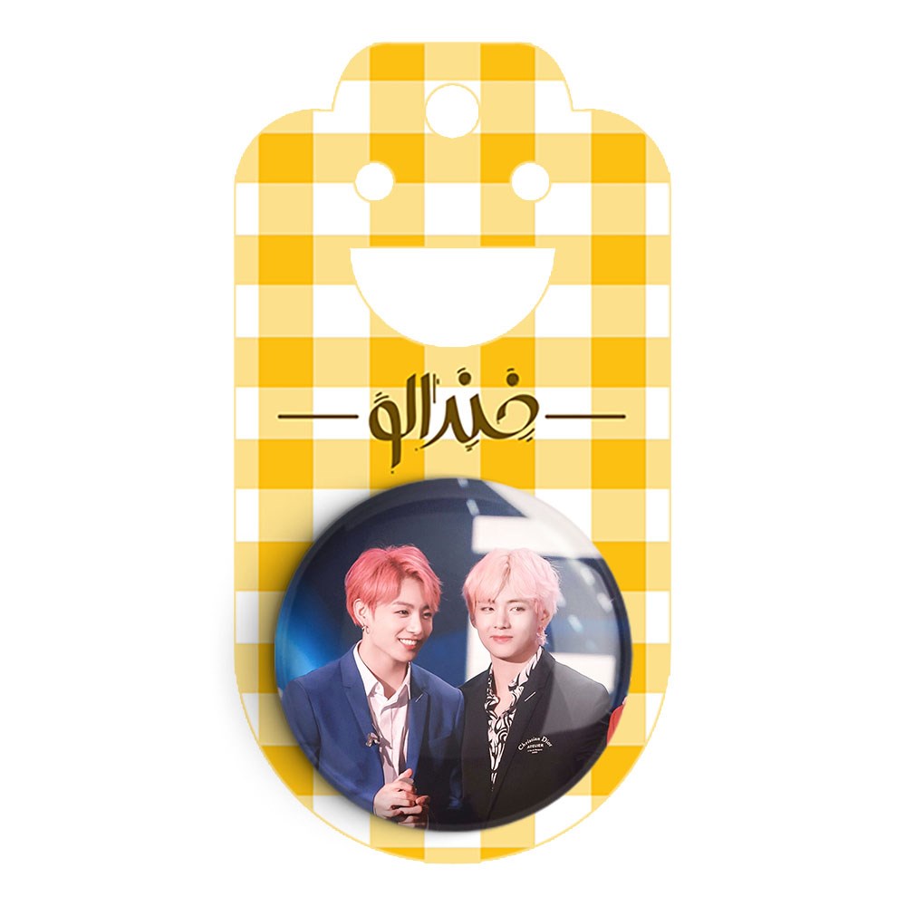پیکسل 44 میلی متری تهیونگ و جونگ کوک ویکوک گروه بی تی اس BTS خندالو با روکش سلفون حرارتی مات مخملی ضدخش و قطعه پشتی رنگی تولید شده است.پلاستیکی پشت پیکسل با سوزن یک تکه ثابت و بدون لغزش و جا به جایی، ایستایی بسیار بهتری نسبت به پشتی فلزی پیکسل دارند که این مهم در تولید این محصول نیز رعایت شده است.
