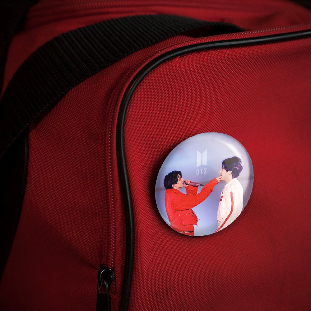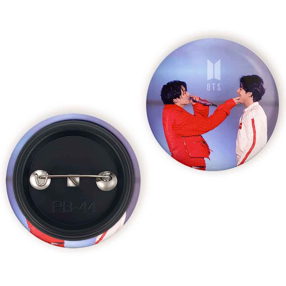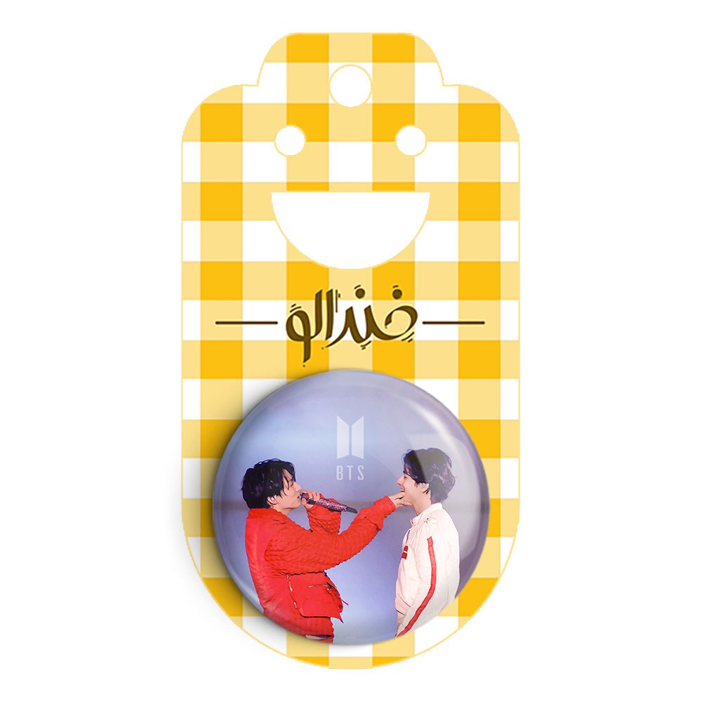 پیکسل 44 میلی متری تهیونگ و جونگ کوک ویکوک گروه بی تی اس BTS خندالو با روکش سلفون حرارتی مات مخملی ضدخش و قطعه پشتی رنگی تولید شده است.پلاستیکی پشت پیکسل با سوزن یک تکه ثابت و بدون لغزش و جا به جایی، ایستایی بسیار بهتری نسبت به پشتی فلزی پیکسل دارند که این مهم در تولید این محصول نیز رعایت شده است.