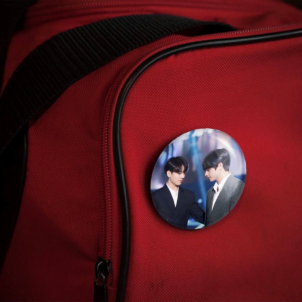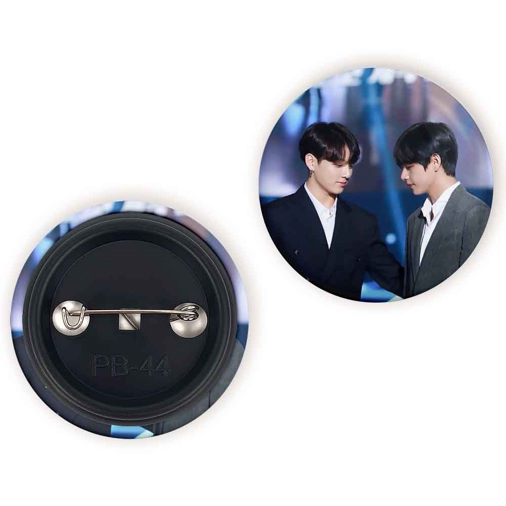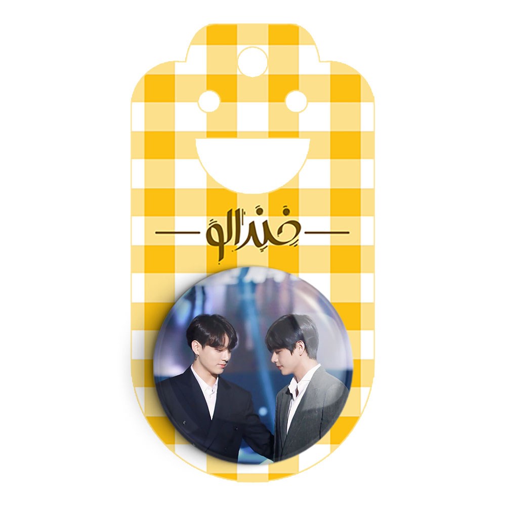 پیکسل 44 میلی متری تهیونگ و جونگ کوک ویکوک گروه بی تی اس BTS خندالو با روکش سلفون حرارتی مات مخملی ضدخش و قطعه پشتی رنگی تولید شده است.پلاستیکی پشت پیکسل با سوزن یک تکه ثابت و بدون لغزش و جا به جایی، ایستایی بسیار بهتری نسبت به پشتی فلزی پیکسل دارند که این مهم در تولید این محصول نیز رعایت شده است.