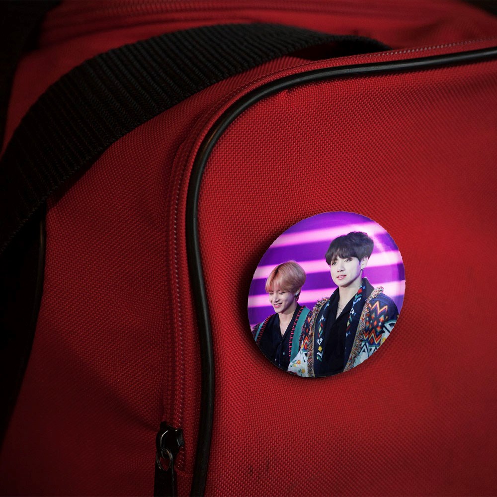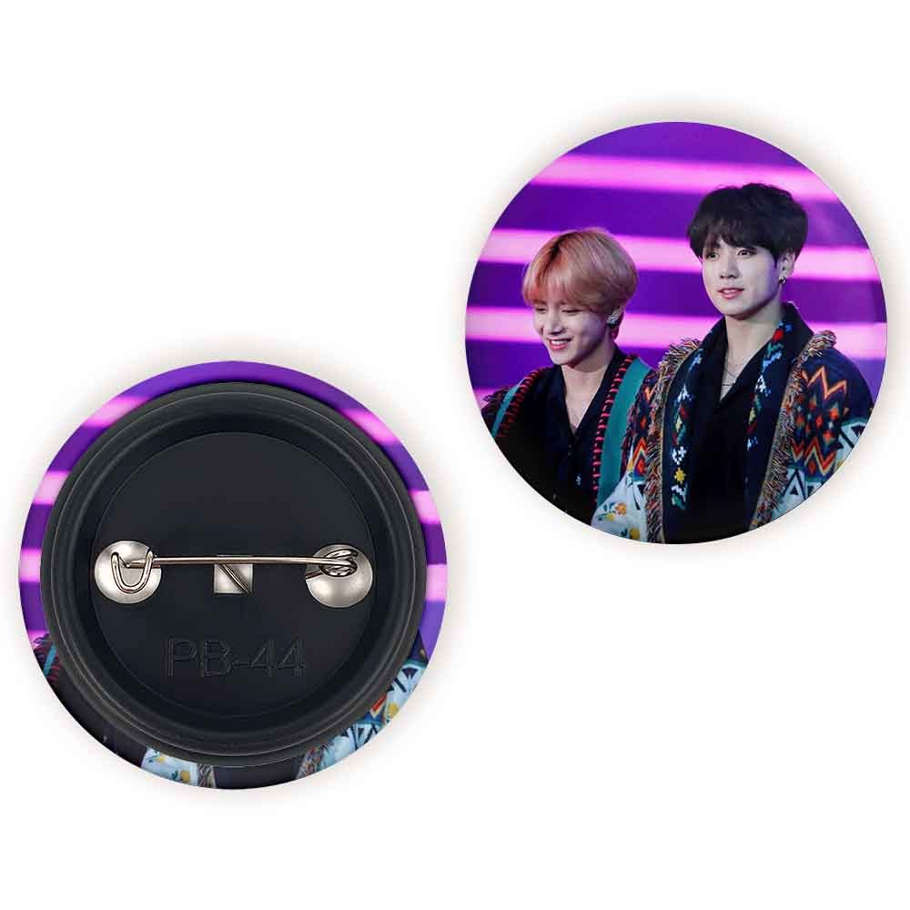 پیکسل 44 میلی متری تهیونگ و جونگ کوک ویکوک گروه بی تی اس BTS خندالو با روکش سلفون حرارتی مات مخملی ضدخش و قطعه پشتی رنگی تولید شده است.پلاستیکی پشت پیکسل با سوزن یک تکه ثابت و بدون لغزش و جا به جایی، ایستایی بسیار بهتری نسبت به پشتی فلزی پیکسل دارند که این مهم در تولید این محصول نیز رعایت شده است.