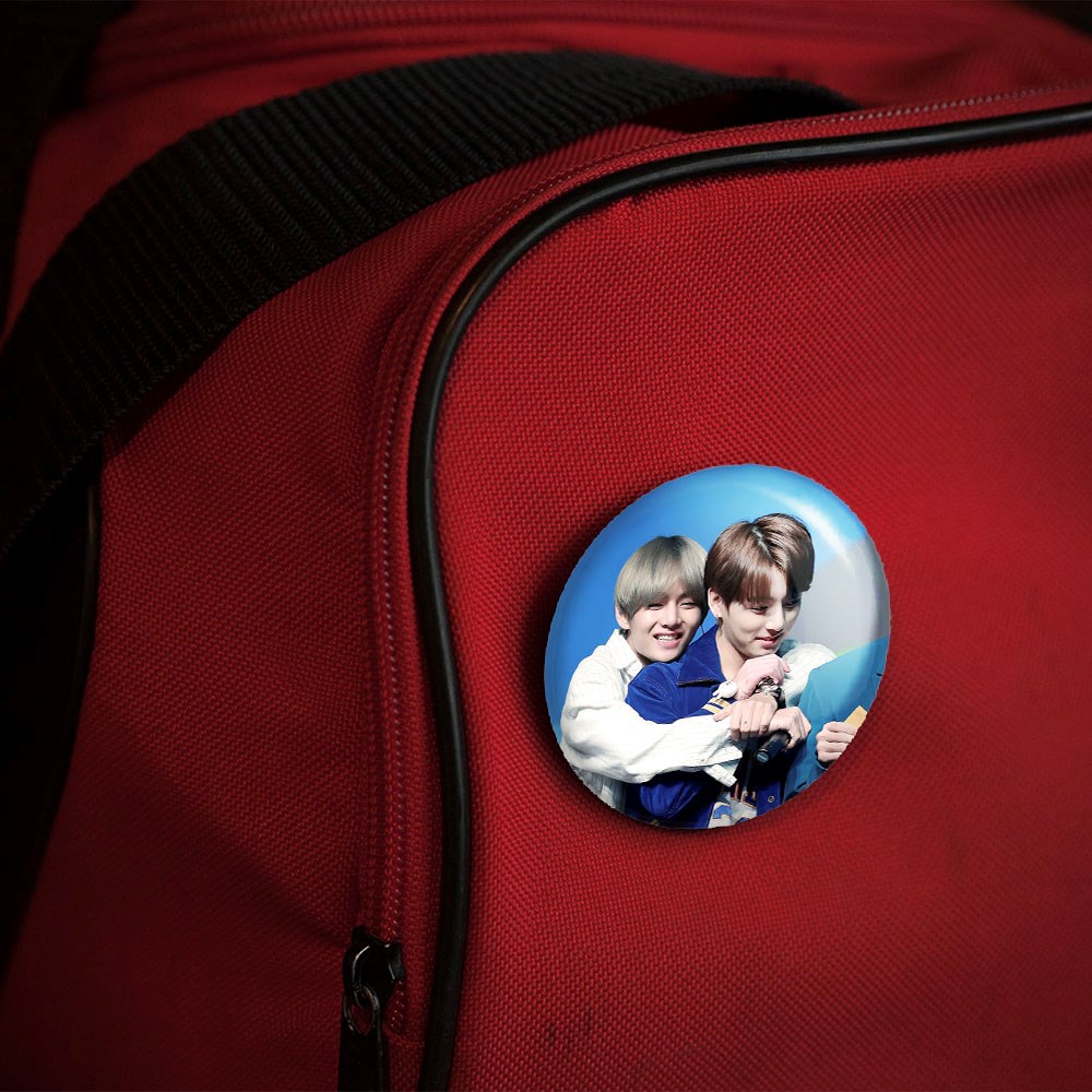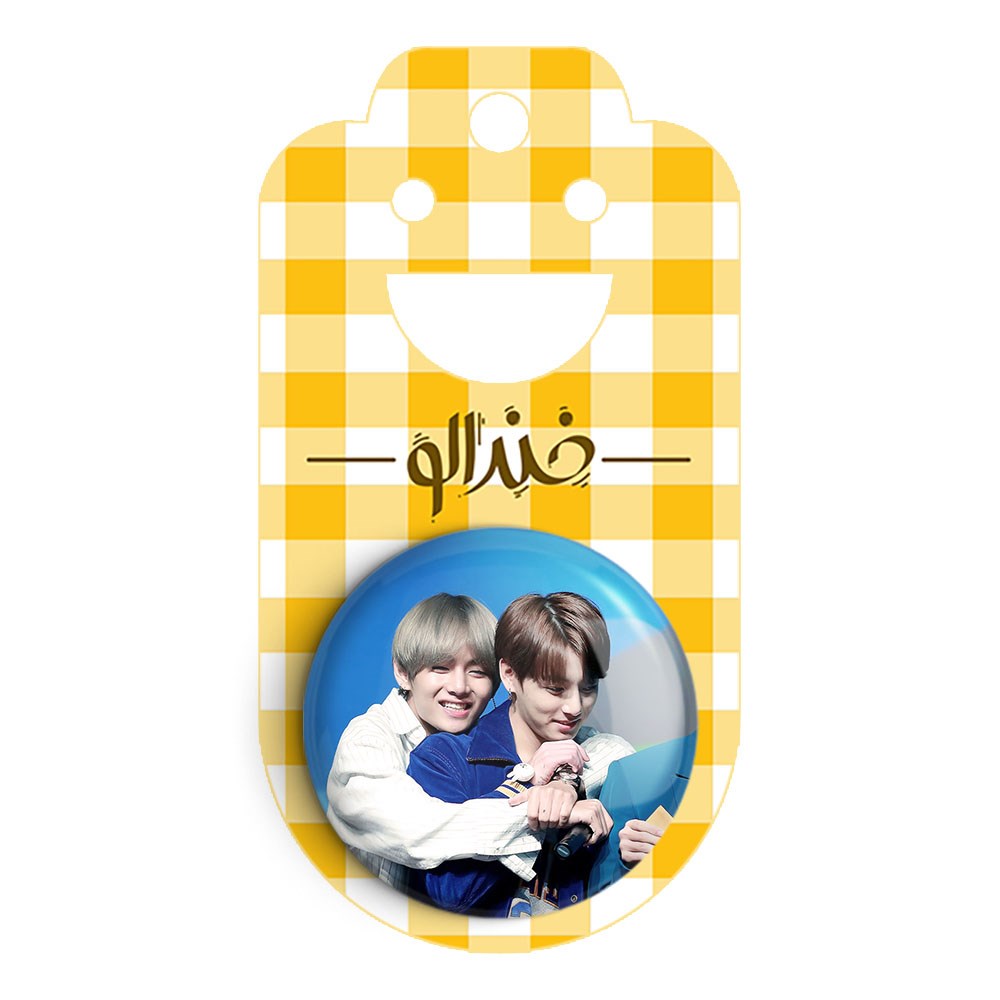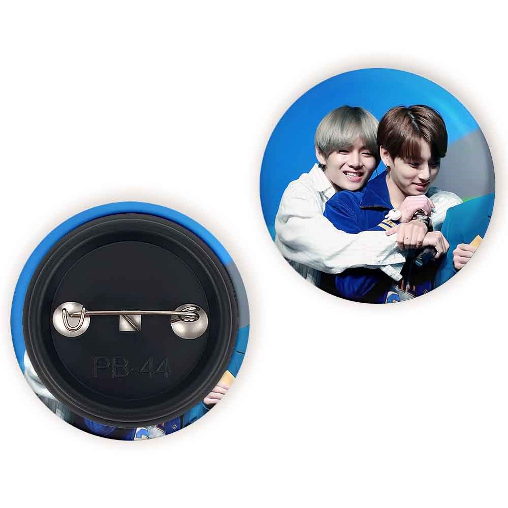 پیکسل 44 میلی متری تهیونگ و جونگ کوک ویکوک گروه بی تی اس BTS خندالو با روکش سلفون حرارتی مات مخملی ضدخش و قطعه پشتی رنگی تولید شده است.پلاستیکی پشت پیکسل با سوزن یک تکه ثابت و بدون لغزش و جا به جایی، ایستایی بسیار بهتری نسبت به پشتی فلزی پیکسل دارند که این مهم در تولید این محصول نیز رعایت شده است.