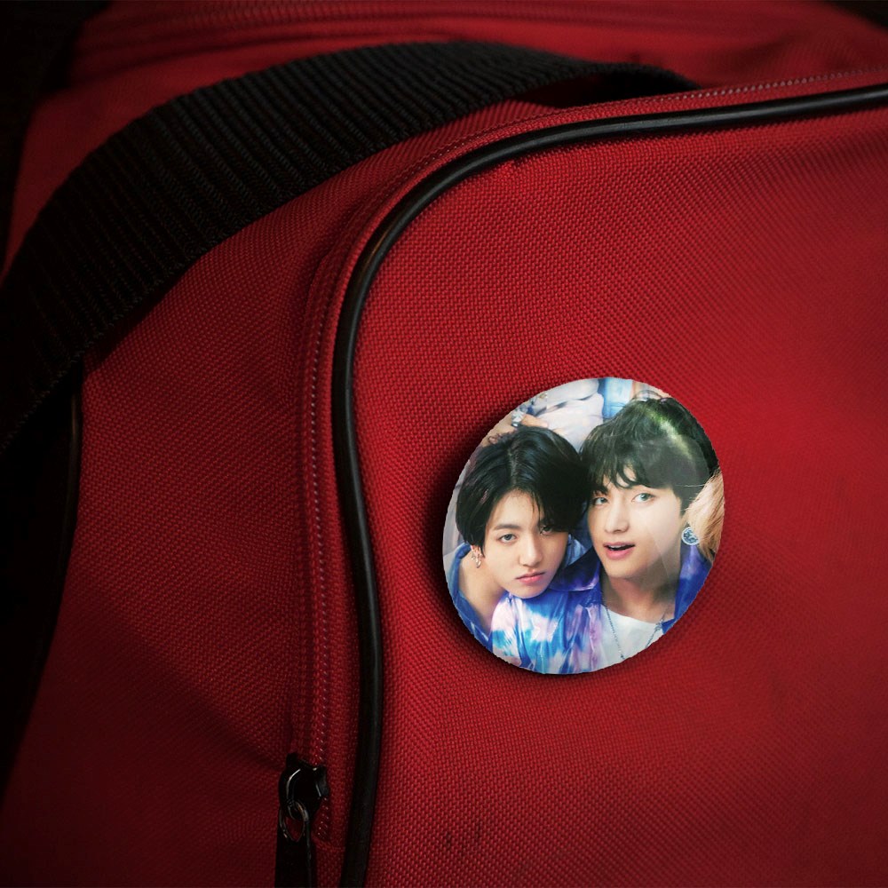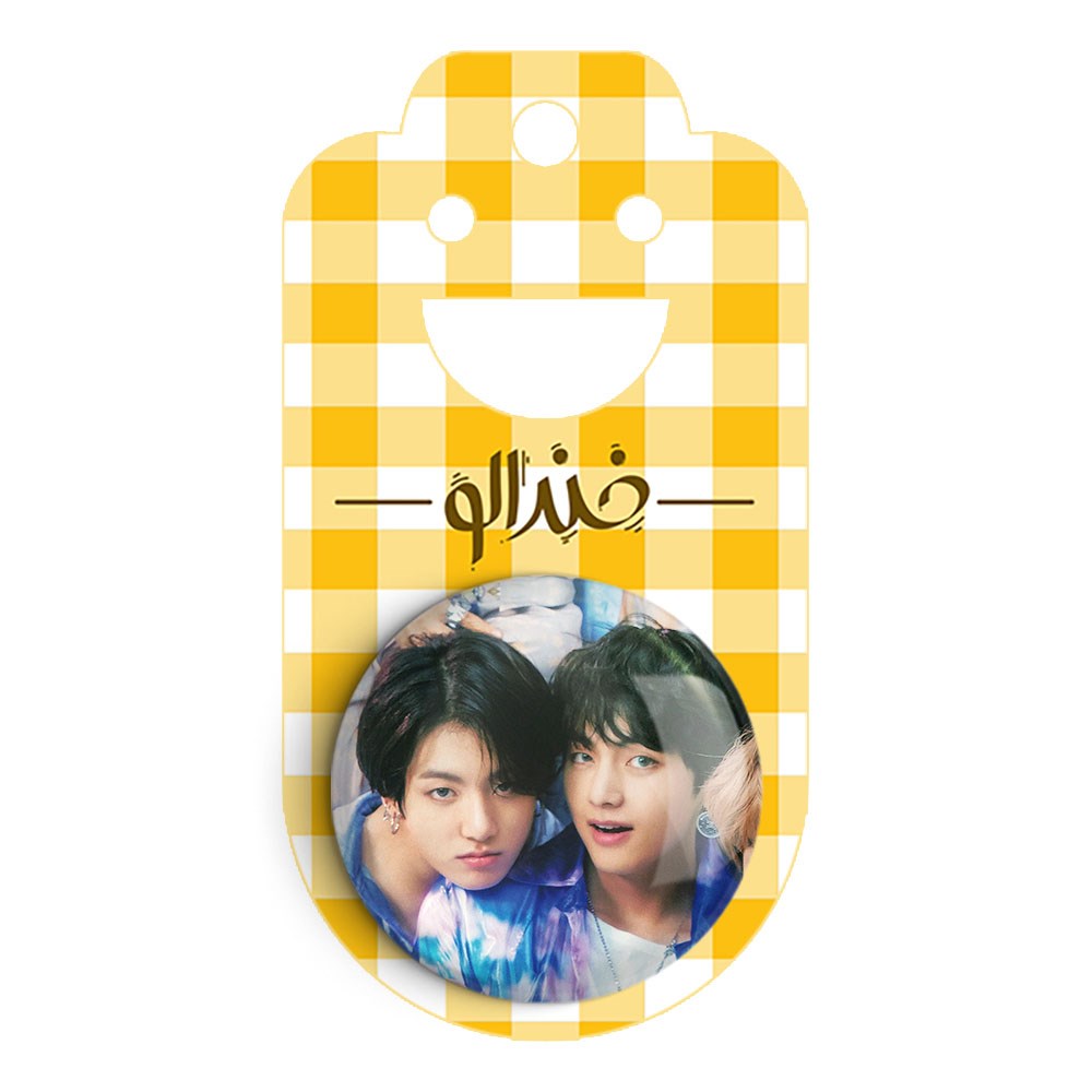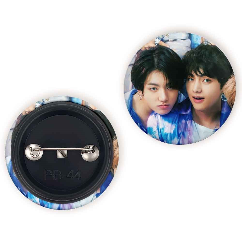 پیکسل 44 میلی متری تهیونگ و جونگ کوک ویکوک گروه بی تی اس BTS خندالو با روکش سلفون حرارتی مات مخملی ضدخش و قطعه پشتی رنگی تولید شده است.پلاستیکی پشت پیکسل با سوزن یک تکه ثابت و بدون لغزش و جا به جایی، ایستایی بسیار بهتری نسبت به پشتی فلزی پیکسل دارند که این مهم در تولید این محصول نیز رعایت شده است.