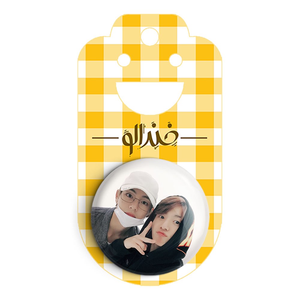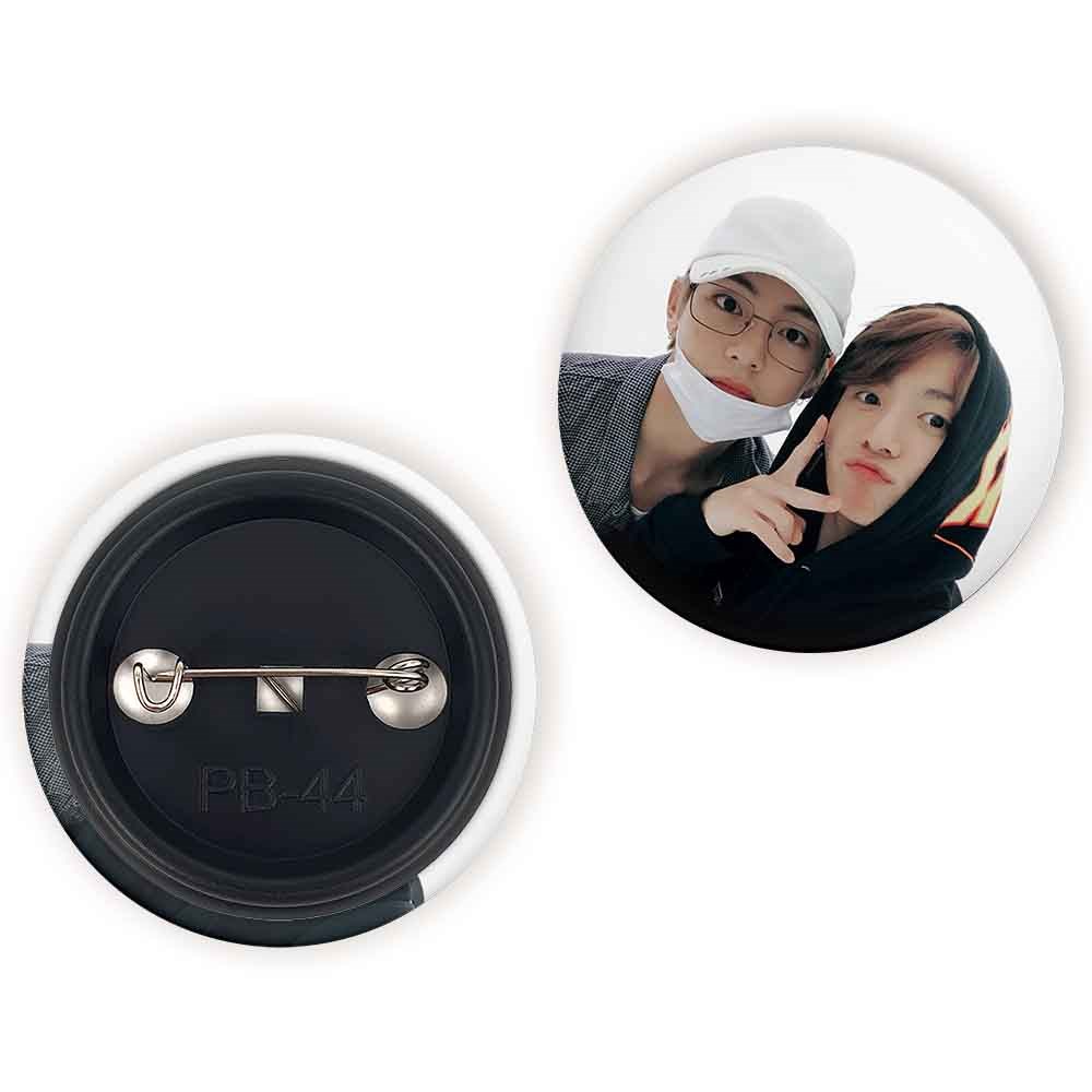پیکسل 44 میلی متری تهیونگ و جونگ کوک ویکوک گروه بی تی اس BTS خندالو با روکش سلفون حرارتی مات مخملی ضدخش و قطعه پشتی رنگی تولید شده است.پلاستیکی پشت پیکسل با سوزن یک تکه ثابت و بدون لغزش و جا به جایی، ایستایی بسیار بهتری نسبت به پشتی فلزی پیکسل دارند که این مهم در تولید این محصول نیز رعایت شده است.
