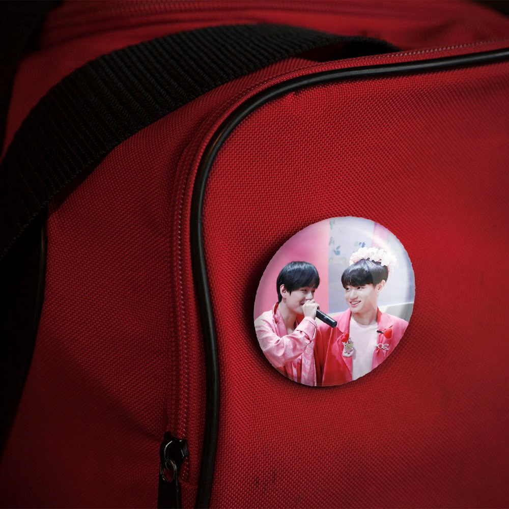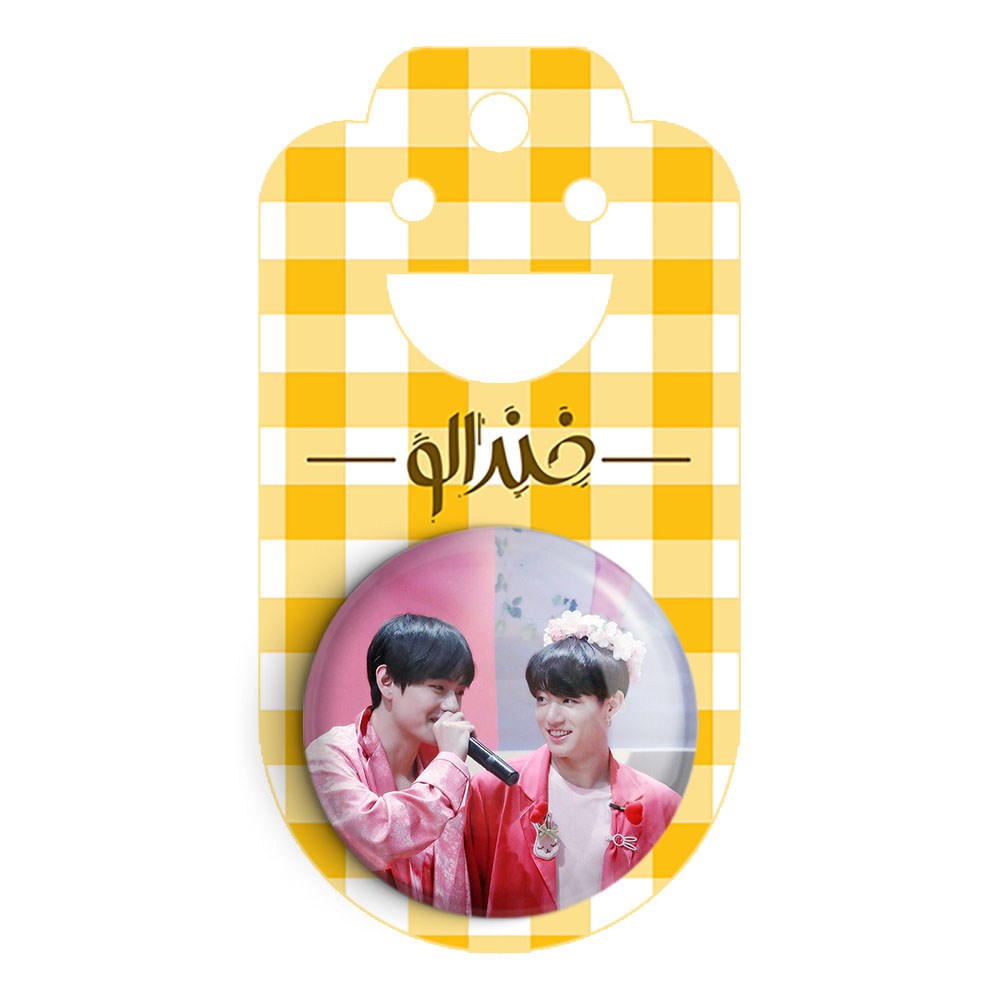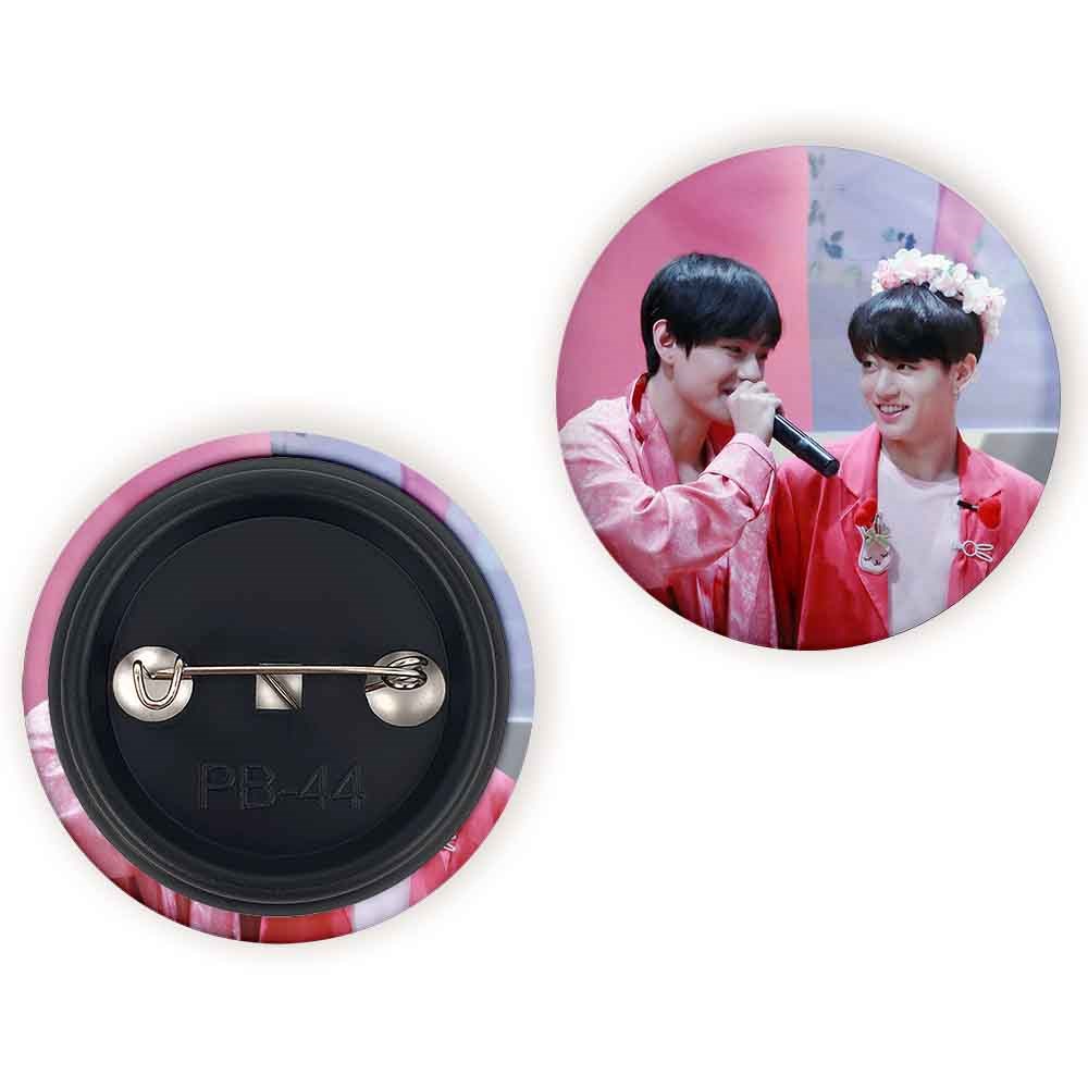 پیکسل 44 میلی متری تهیونگ و جونگ کوک ویکوک گروه بی تی اس BTS خندالو با روکش سلفون حرارتی مات مخملی ضدخش و قطعه پشتی رنگی تولید شده است.پلاستیکی پشت پیکسل با سوزن یک تکه ثابت و بدون لغزش و جا به جایی، ایستایی بسیار بهتری نسبت به پشتی فلزی پیکسل دارند که این مهم در تولید این محصول نیز رعایت شده است.