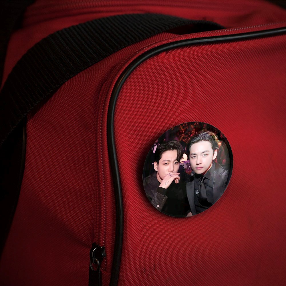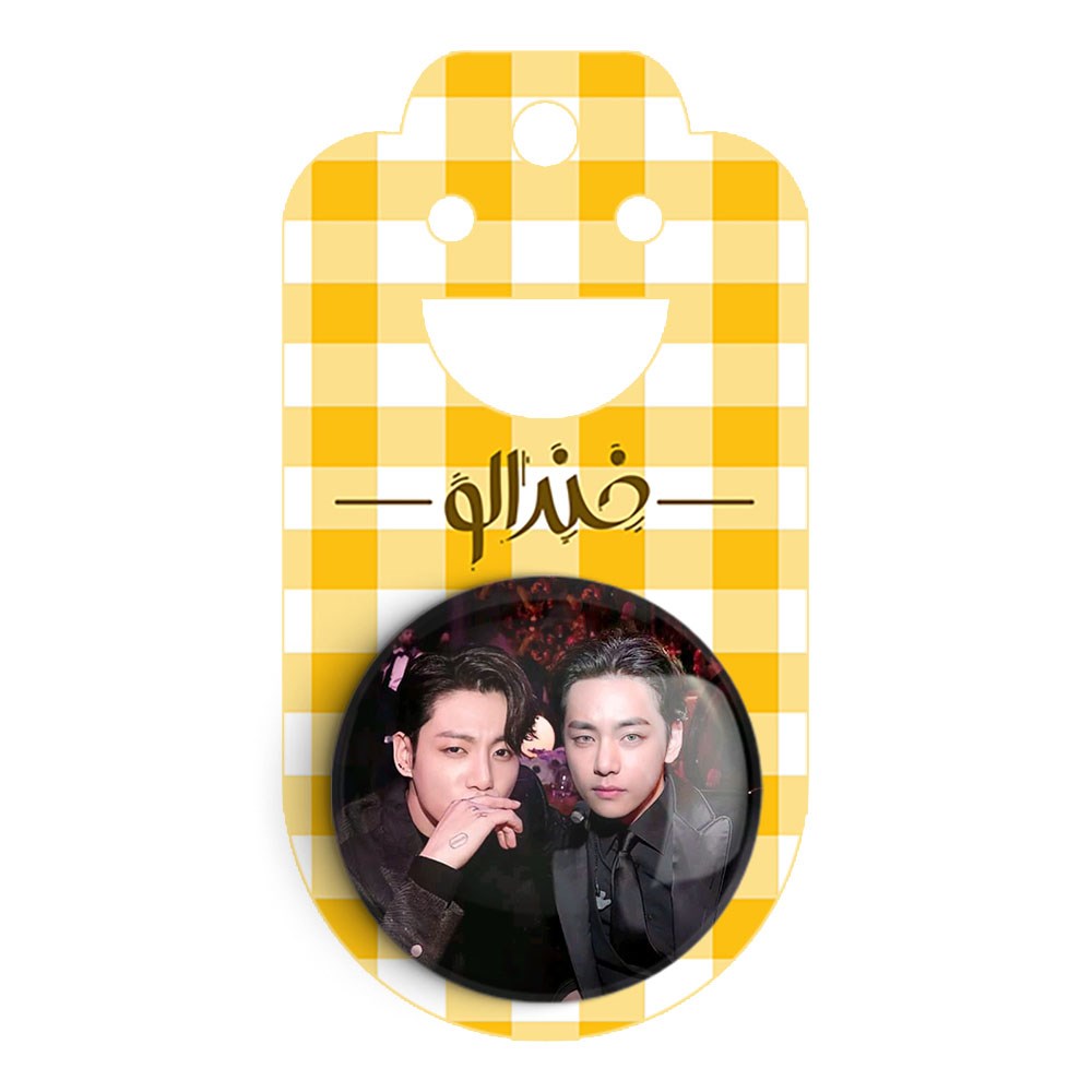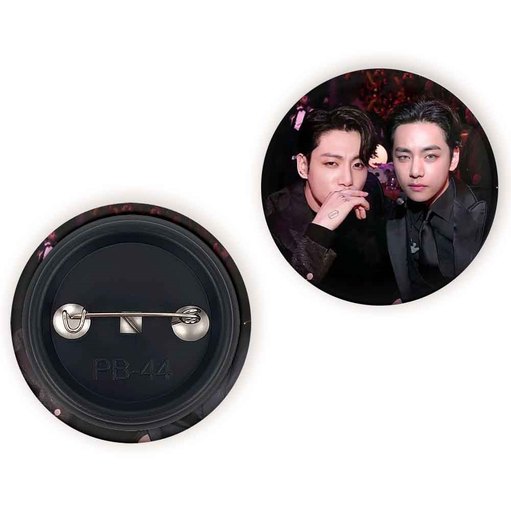 پیکسل 44 میلی متری تهیونگ و جونگ کوک ویکوک گروه بی تی اس BTS خندالو با روکش سلفون حرارتی مات مخملی ضدخش و قطعه پشتی رنگی تولید شده است.پلاستیکی پشت پیکسل با سوزن یک تکه ثابت و بدون لغزش و جا به جایی، ایستایی بسیار بهتری نسبت به پشتی فلزی پیکسل دارند که این مهم در تولید این محصول نیز رعایت شده است.