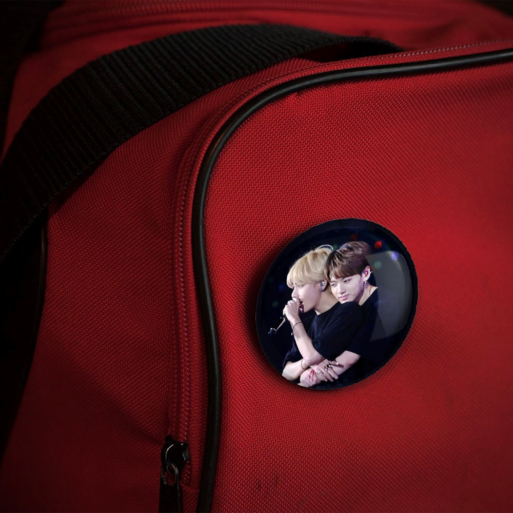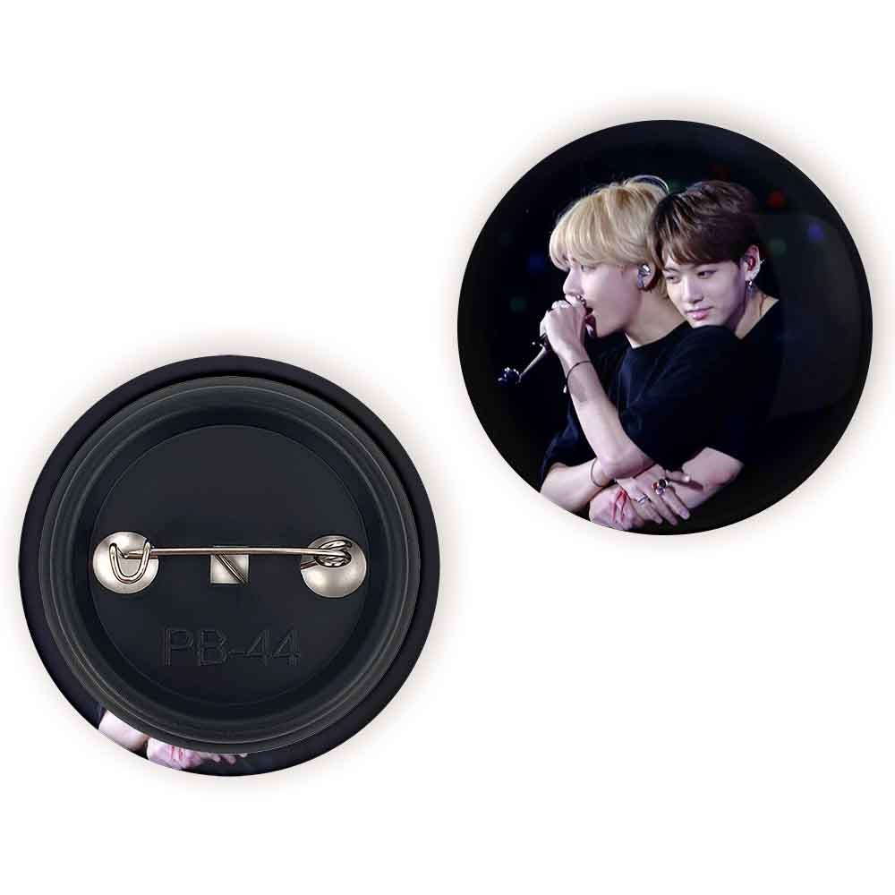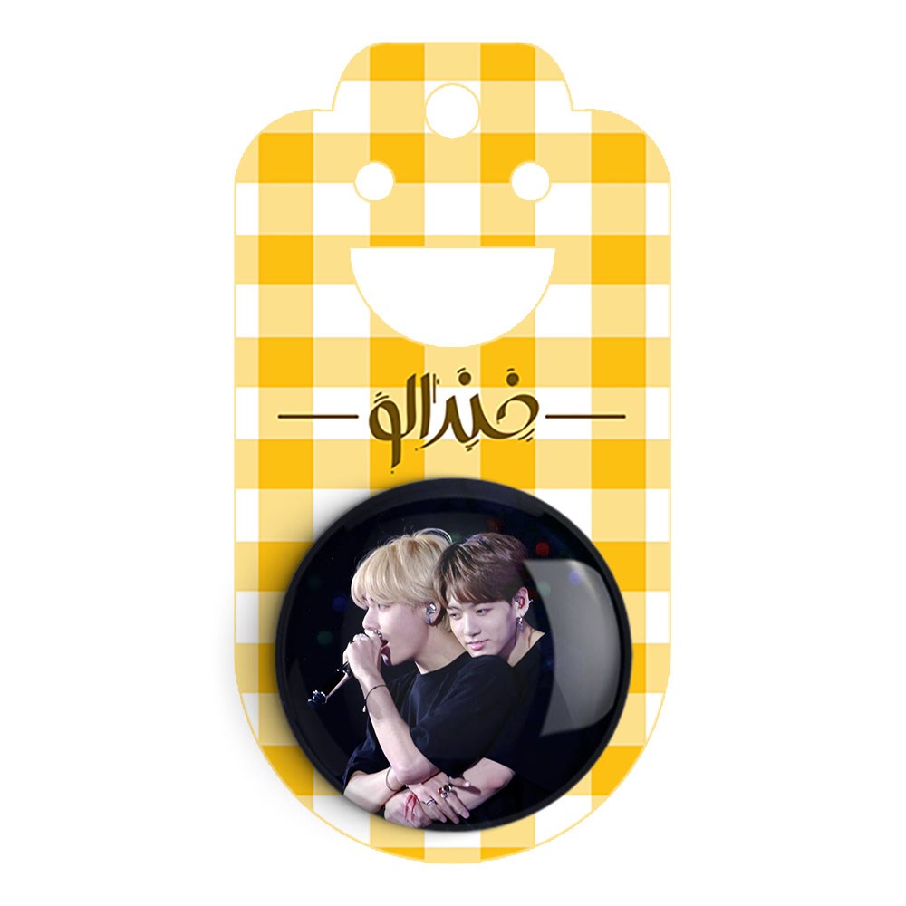 پیکسل 44 میلی متری تهیونگ و جونگ کوک ویکوک گروه بی تی اس BTS خندالو با روکش سلفون حرارتی مات مخملی ضدخش و قطعه پشتی رنگی تولید شده است.پلاستیکی پشت پیکسل با سوزن یک تکه ثابت و بدون لغزش و جا به جایی، ایستایی بسیار بهتری نسبت به پشتی فلزی پیکسل دارند که این مهم در تولید این محصول نیز رعایت شده است.