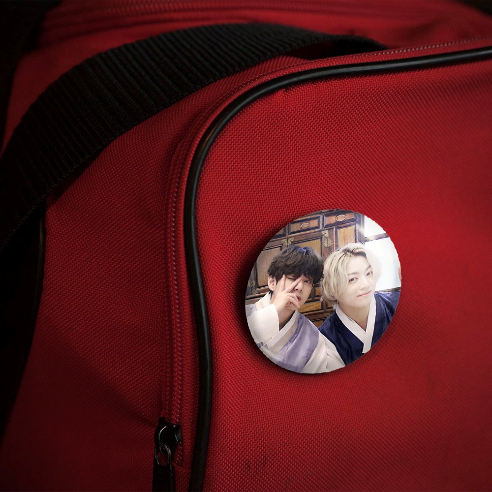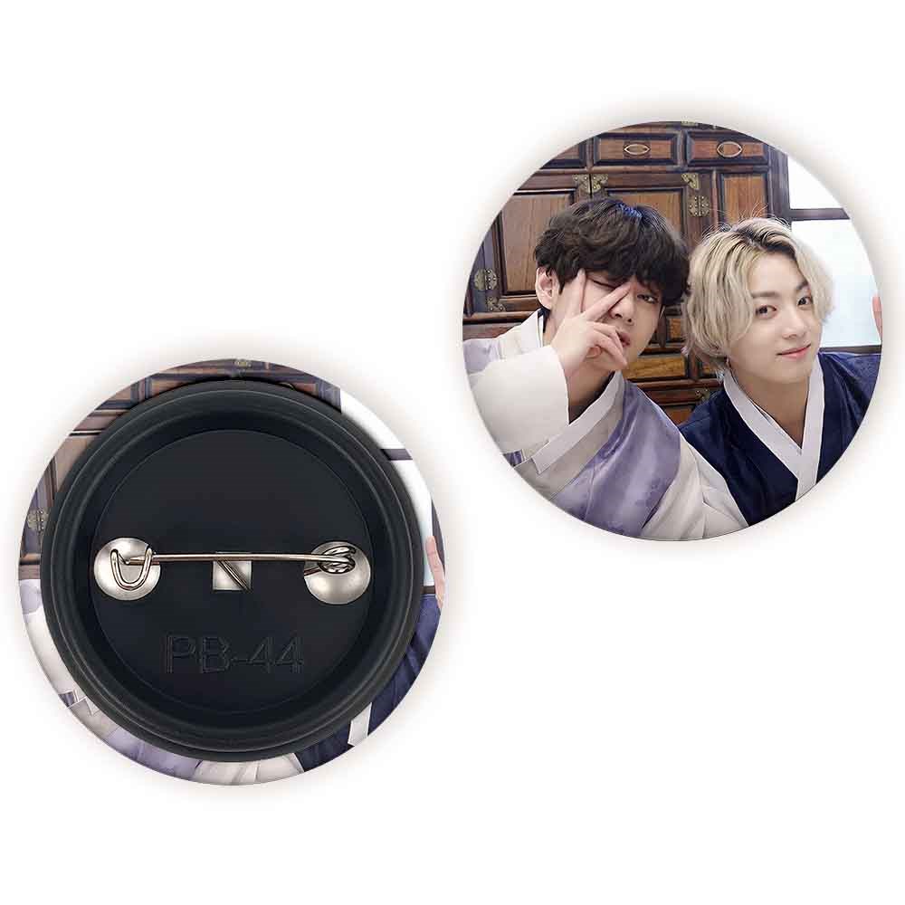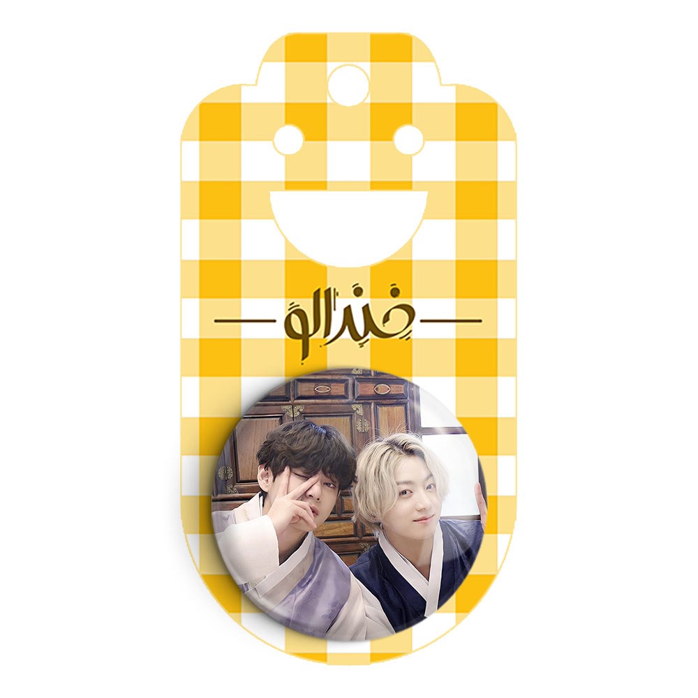 پیکسل 44 میلی متری تهیونگ و جونگ کوک ویکوک گروه بی تی اس BTS خندالو با روکش سلفون حرارتی مات مخملی ضدخش و قطعه پشتی رنگی تولید شده است.پلاستیکی پشت پیکسل با سوزن یک تکه ثابت و بدون لغزش و جا به جایی، ایستایی بسیار بهتری نسبت به پشتی فلزی پیکسل دارند که این مهم در تولید این محصول نیز رعایت شده است.