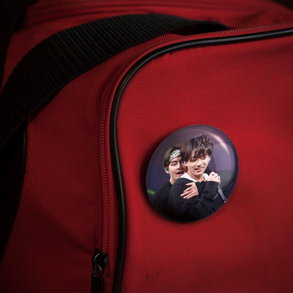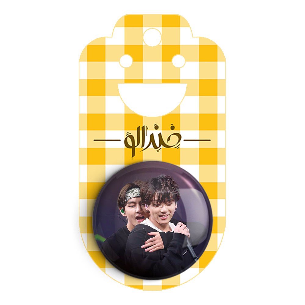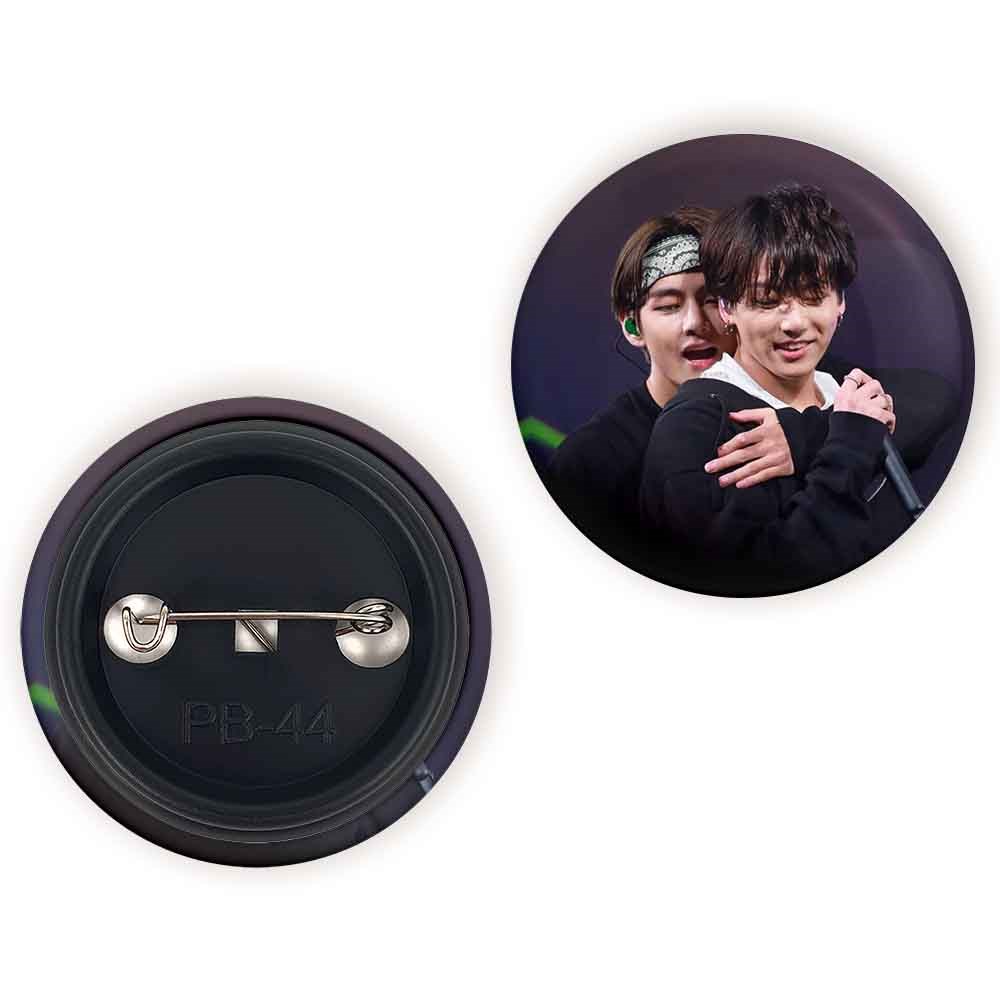 پیکسل 44 میلی متری تهیونگ و جونگ کوک ویکوک گروه بی تی اس BTS خندالو با روکش سلفون حرارتی مات مخملی ضدخش و قطعه پشتی رنگی تولید شده است.پلاستیکی پشت پیکسل با سوزن یک تکه ثابت و بدون لغزش و جا به جایی، ایستایی بسیار بهتری نسبت به پشتی فلزی پیکسل دارند که این مهم در تولید این محصول نیز رعایت شده است.