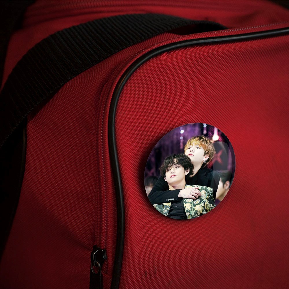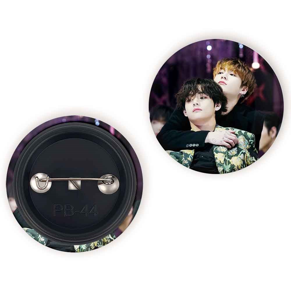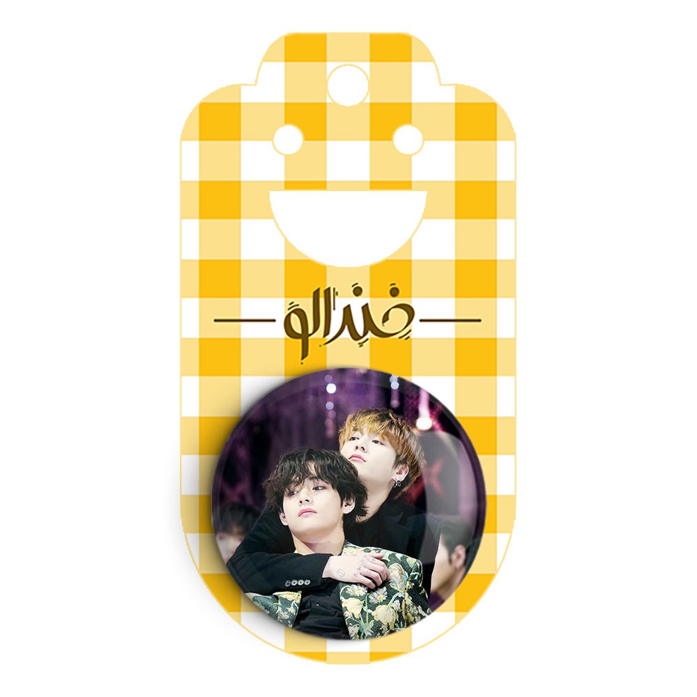 پیکسل 44 میلی متری تهیونگ و جونگ کوک ویکوک گروه بی تی اس BTS خندالو با روکش سلفون حرارتی مات مخملی ضدخش و قطعه پشتی رنگی تولید شده است.پلاستیکی پشت پیکسل با سوزن یک تکه ثابت و بدون لغزش و جا به جایی، ایستایی بسیار بهتری نسبت به پشتی فلزی پیکسل دارند که این مهم در تولید این محصول نیز رعایت شده است.