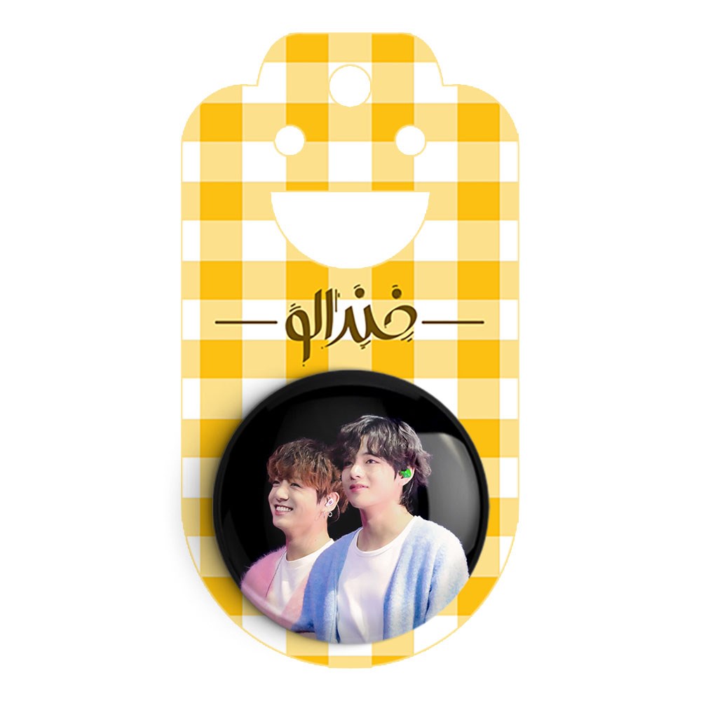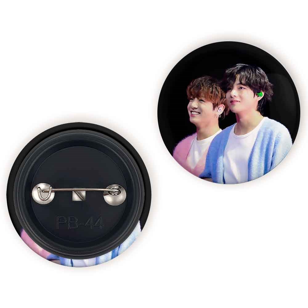 پیکسل 44 میلی متری تهیونگ و جونگ کوک ویکوک گروه بی تی اس BTS خندالو با روکش سلفون حرارتی مات مخملی ضدخش و قطعه پشتی رنگی تولید شده است.پلاستیکی پشت پیکسل با سوزن یک تکه ثابت و بدون لغزش و جا به جایی، ایستایی بسیار بهتری نسبت به پشتی فلزی پیکسل دارند که این مهم در تولید این محصول نیز رعایت شده است.