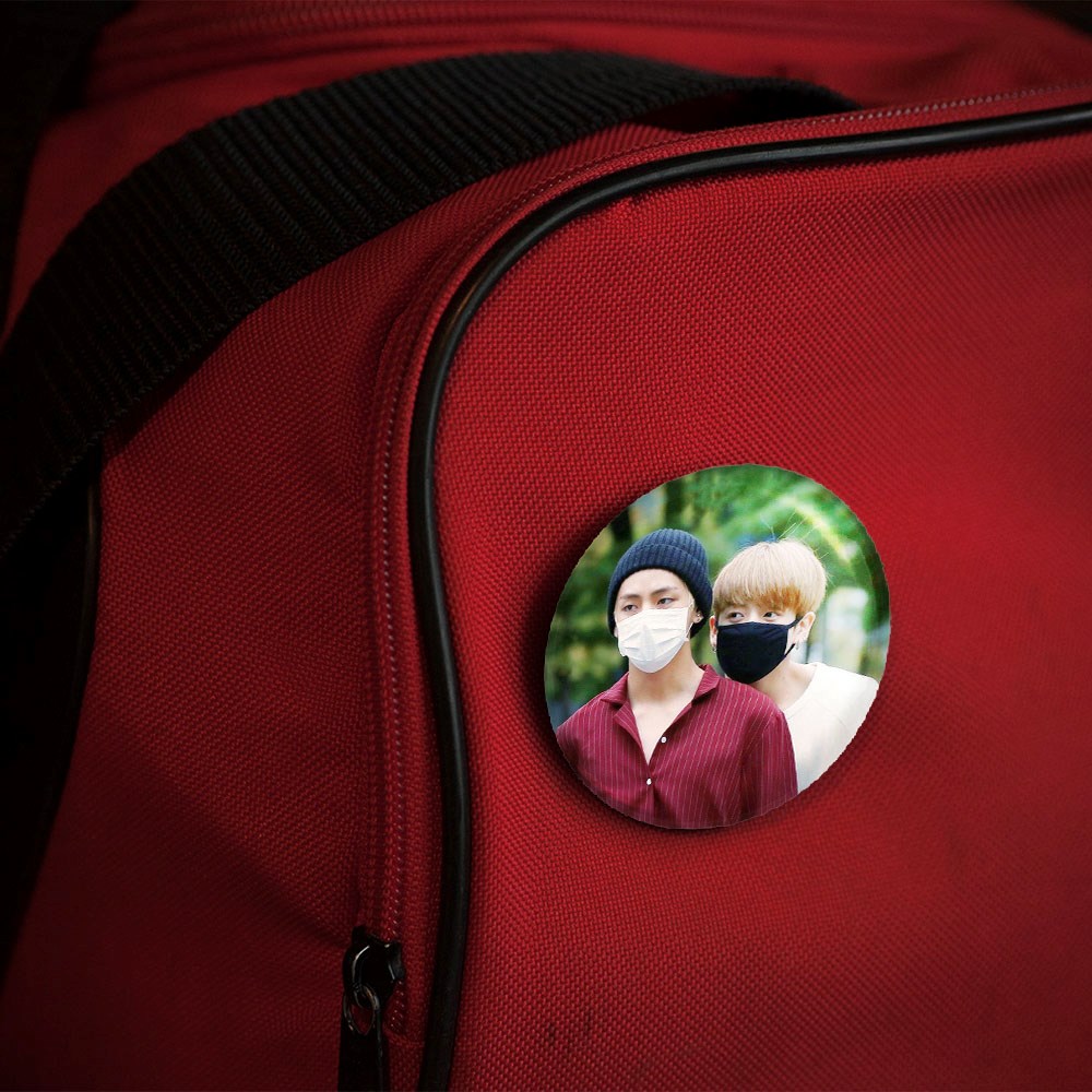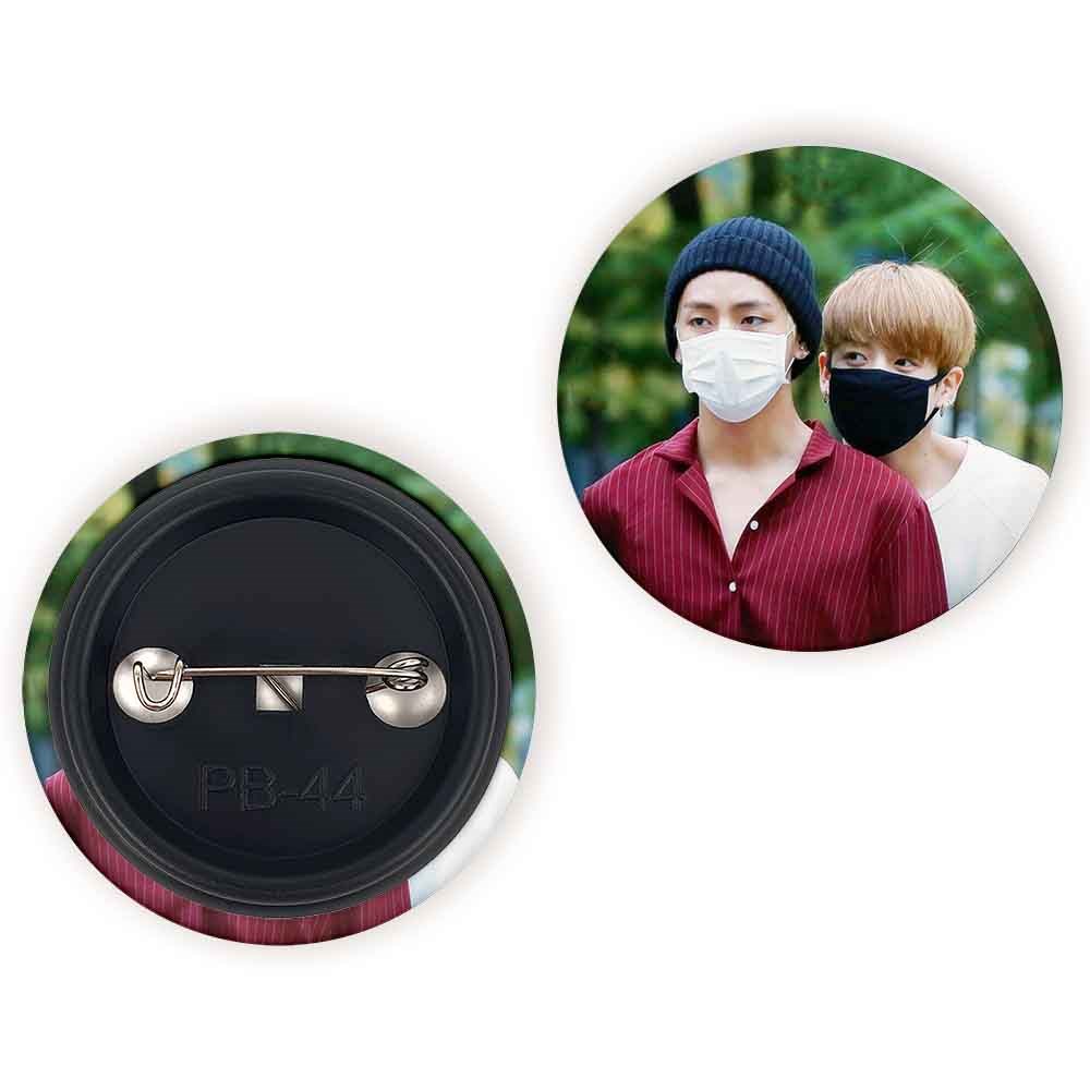 پیکسل 44 میلی متری تهیونگ و جونگ کوک ویکوک گروه بی تی اس BTS خندالو با روکش سلفون حرارتی مات مخملی ضدخش و قطعه پشتی رنگی تولید شده است.پلاستیکی پشت پیکسل با سوزن یک تکه ثابت و بدون لغزش و جا به جایی، ایستایی بسیار بهتری نسبت به پشتی فلزی پیکسل دارند که این مهم در تولید این محصول نیز رعایت شده است.