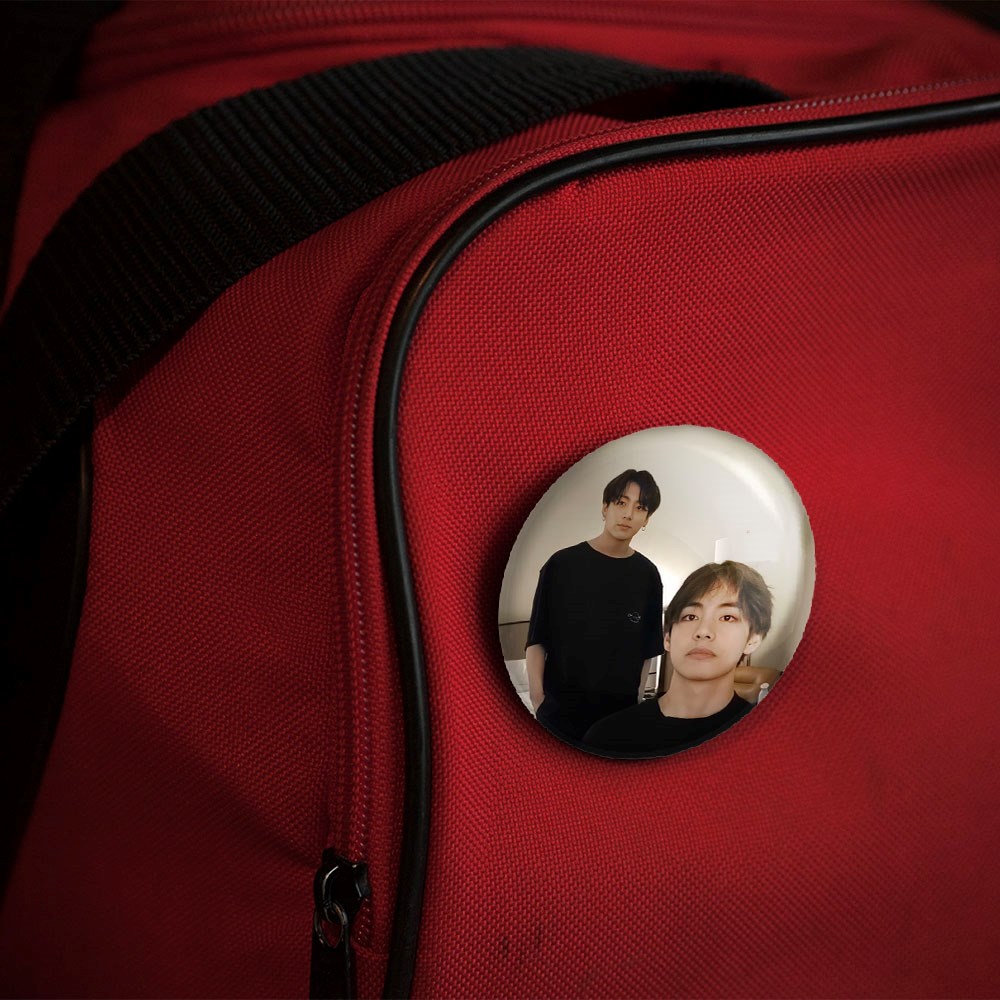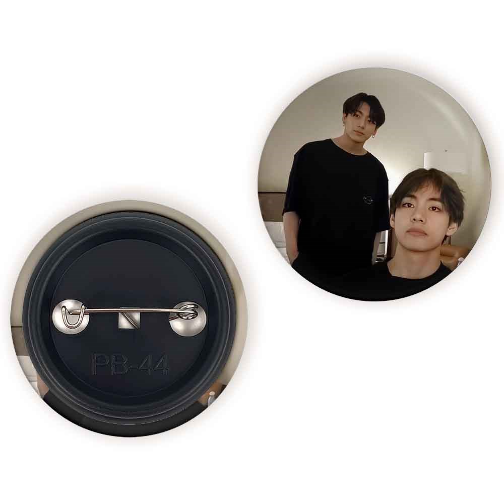 پیکسل 44 میلی متری تهیونگ و جونگ کوک ویکوک گروه بی تی اس BTS خندالو با روکش سلفون حرارتی مات مخملی ضدخش و قطعه پشتی رنگی تولید شده است.پلاستیکی پشت پیکسل با سوزن یک تکه ثابت و بدون لغزش و جا به جایی، ایستایی بسیار بهتری نسبت به پشتی فلزی پیکسل دارند که این مهم در تولید این محصول نیز رعایت شده است.