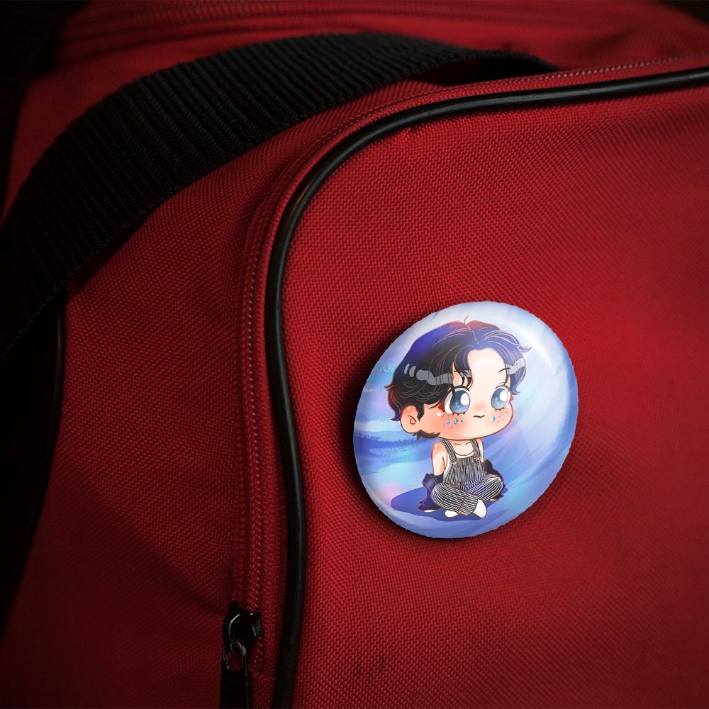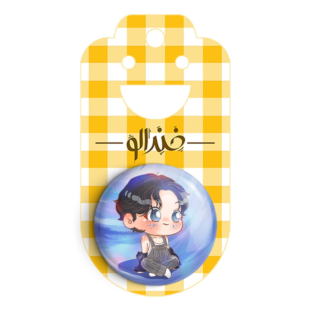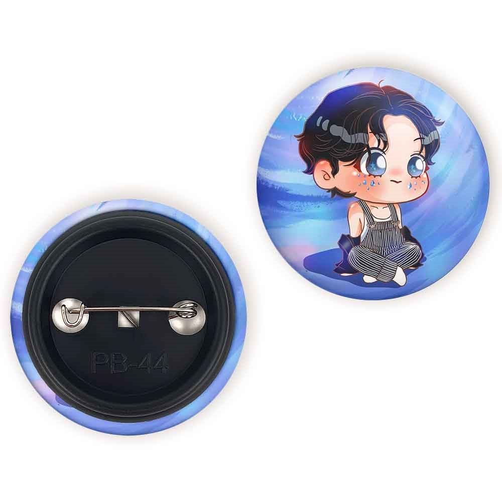 پیکسل 44 میلی متری تهیونگ Taehyung گروه بی تی اس BTS خندالو با روکش سلفون حرارتی مات مخملی ضدخش و قطعه پشتی رنگی تولید شده است.پلاستیکی پشت پیکسل با سوزن یک تکه ثابت و بدون لغزش و جا به جایی، ایستایی بسیار بهتری نسبت به پشتی فلزی پیکسل دارند که این مهم در تولید این محصول نیز رعایت شده است.