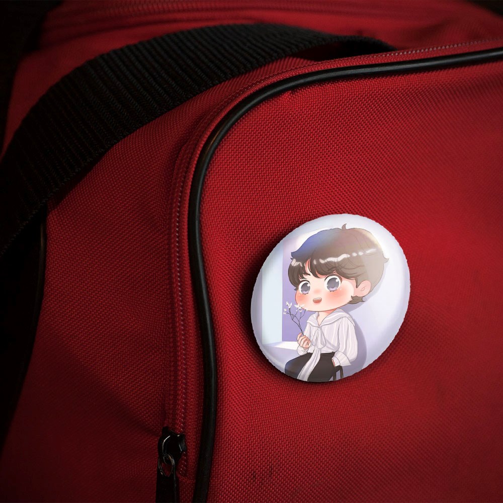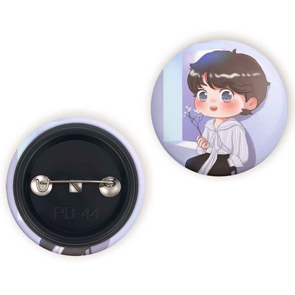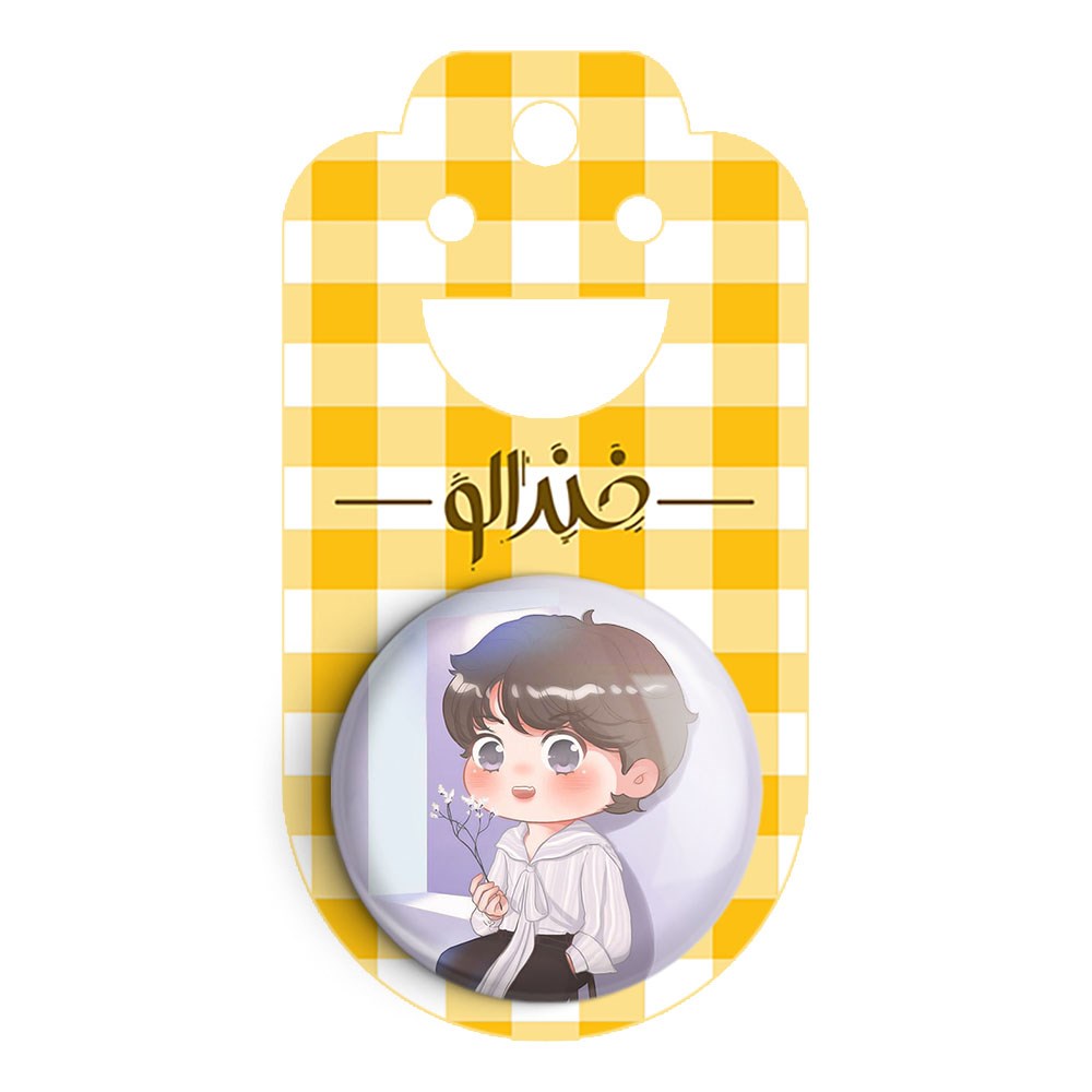 پیکسل 44 میلی متری تهیونگ Taehyung گروه بی تی اس BTS خندالو با روکش سلفون حرارتی مات مخملی ضدخش و قطعه پشتی رنگی تولید شده است.پلاستیکی پشت پیکسل با سوزن یک تکه ثابت و بدون لغزش و جا به جایی، ایستایی بسیار بهتری نسبت به پشتی فلزی پیکسل دارند که این مهم در تولید این محصول نیز رعایت شده است.
