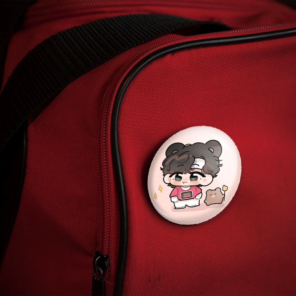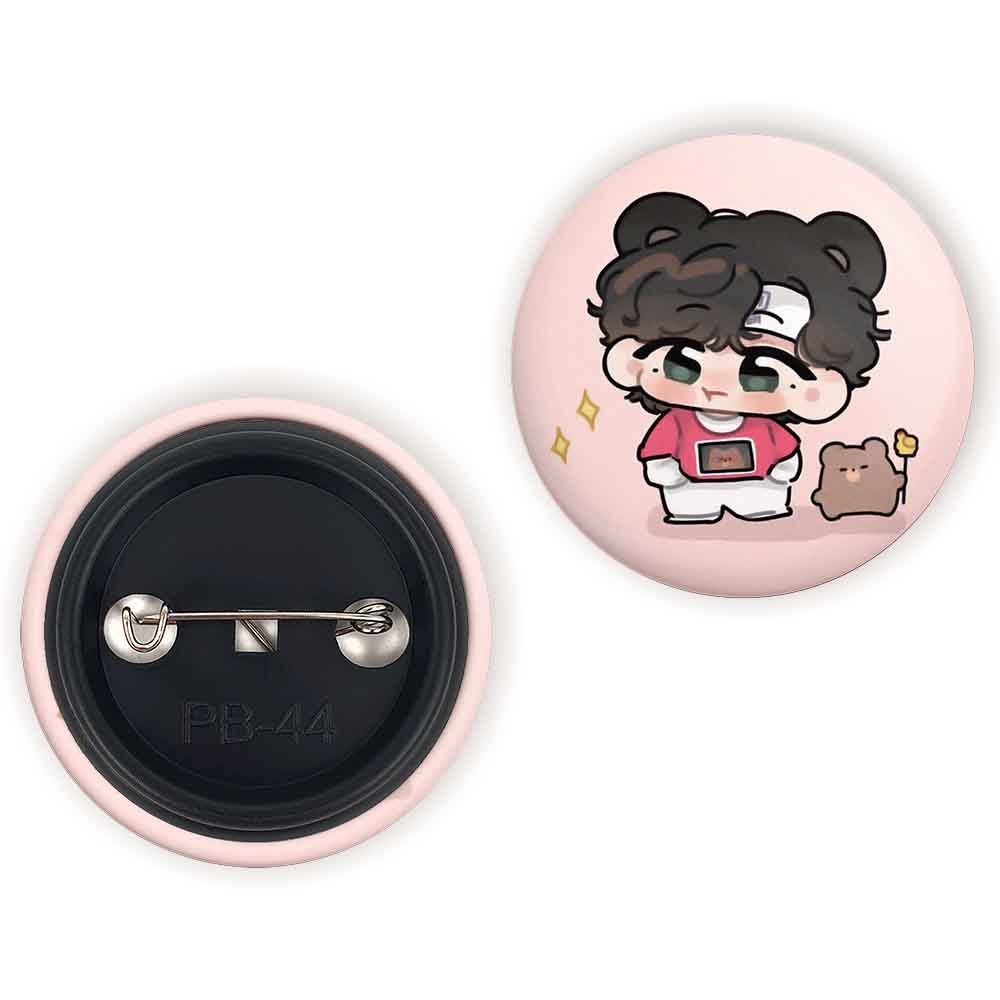 پیکسل 44 میلی متری تهیونگ Taehyung گروه بی تی اس BTS خندالو با روکش سلفون حرارتی مات مخملی ضدخش و قطعه پشتی رنگی تولید شده است.پلاستیکی پشت پیکسل با سوزن یک تکه ثابت و بدون لغزش و جا به جایی، ایستایی بسیار بهتری نسبت به پشتی فلزی پیکسل دارند که این مهم در تولید این محصول نیز رعایت شده است.