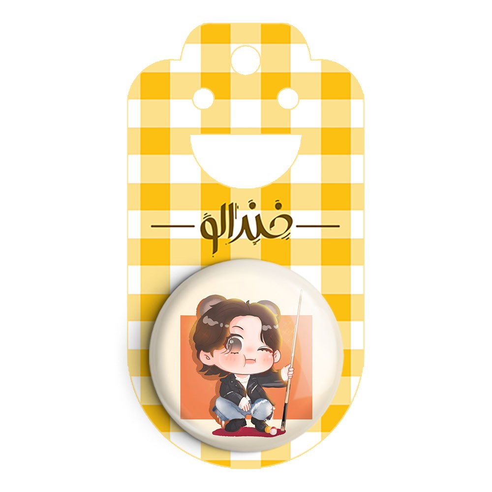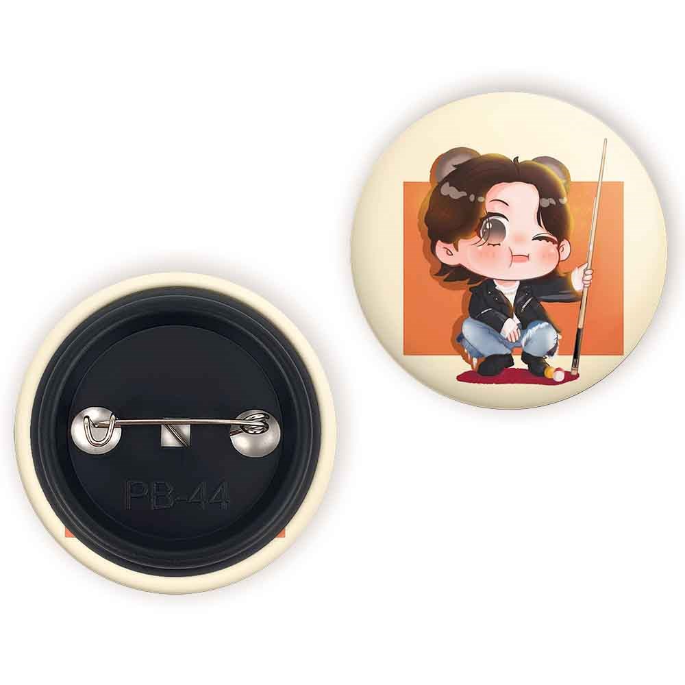 پیکسل 44 میلی متری تهیونگ Taehyung گروه بی تی اس BTS خندالو با روکش سلفون حرارتی مات مخملی ضدخش و قطعه پشتی رنگی تولید شده است.پلاستیکی پشت پیکسل با سوزن یک تکه ثابت و بدون لغزش و جا به جایی، ایستایی بسیار بهتری نسبت به پشتی فلزی پیکسل دارند که این مهم در تولید این محصول نیز رعایت شده است.