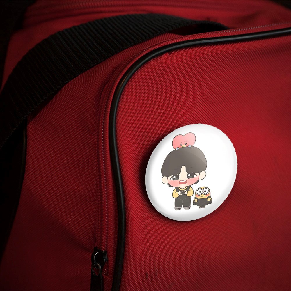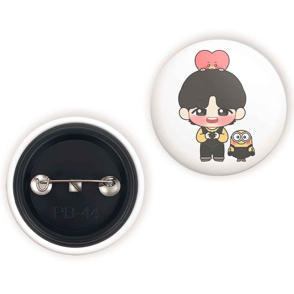 پیکسل 44 میلی متری تهیونگ Taehyung گروه بی تی اس BTS خندالو با روکش سلفون حرارتی مات مخملی ضدخش و قطعه پشتی رنگی تولید شده است.پلاستیکی پشت پیکسل با سوزن یک تکه ثابت و بدون لغزش و جا به جایی، ایستایی بسیار بهتری نسبت به پشتی فلزی پیکسل دارند که این مهم در تولید این محصول نیز رعایت شده است.