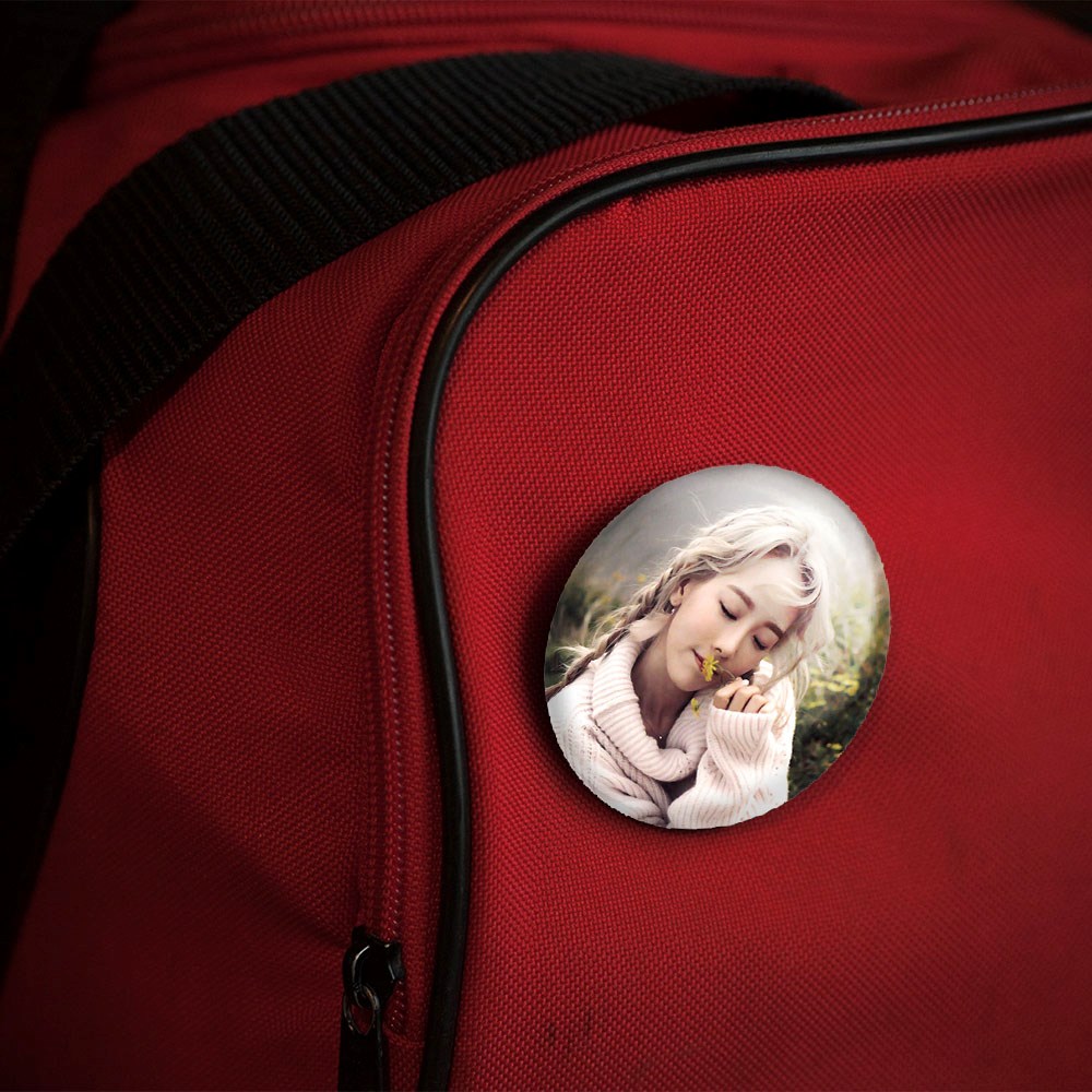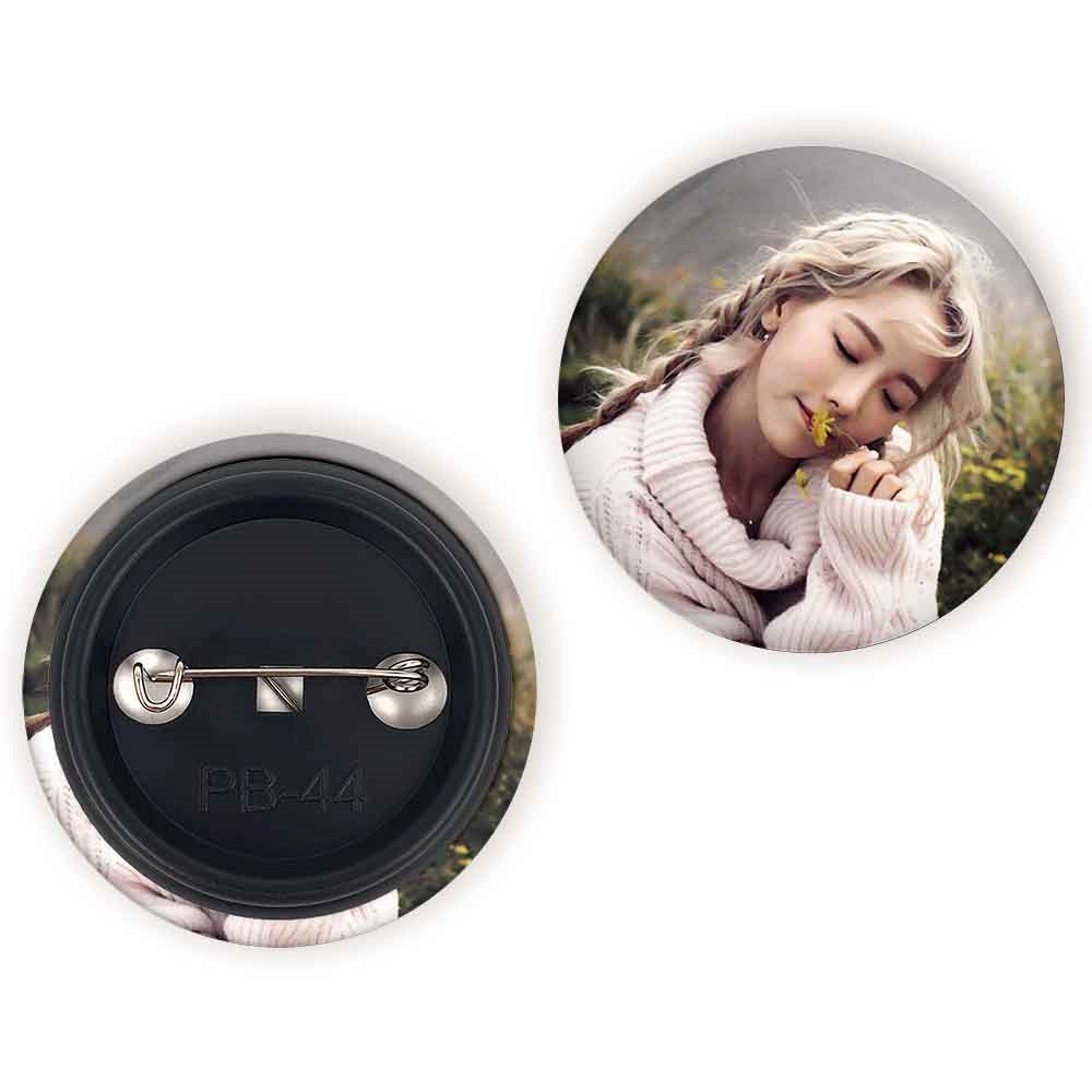 پیکسل 44 میلی متری تهیون گروه گرلز جنریشن Girls Generation خندالو با روکش سلفون حرارتی مات مخملی ضدخش و قطعه پشتی رنگی تولید شده است.پلاستیکی پشت پیکسل با سوزن یک تکه ثابت و بدون لغزش و جا به جایی، ایستایی بسیار بهتری نسبت به پشتی فلزی پیکسل دارند که این مهم در تولید این محصول نیز رعایت شده است.