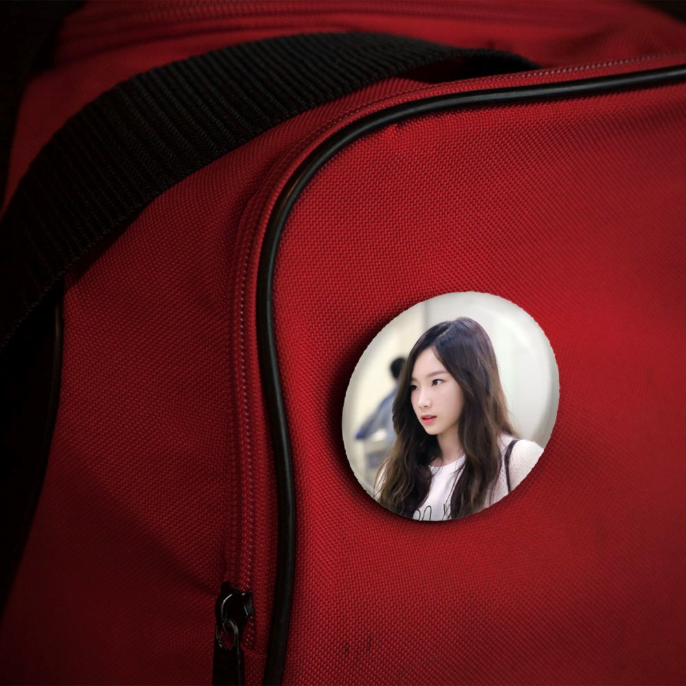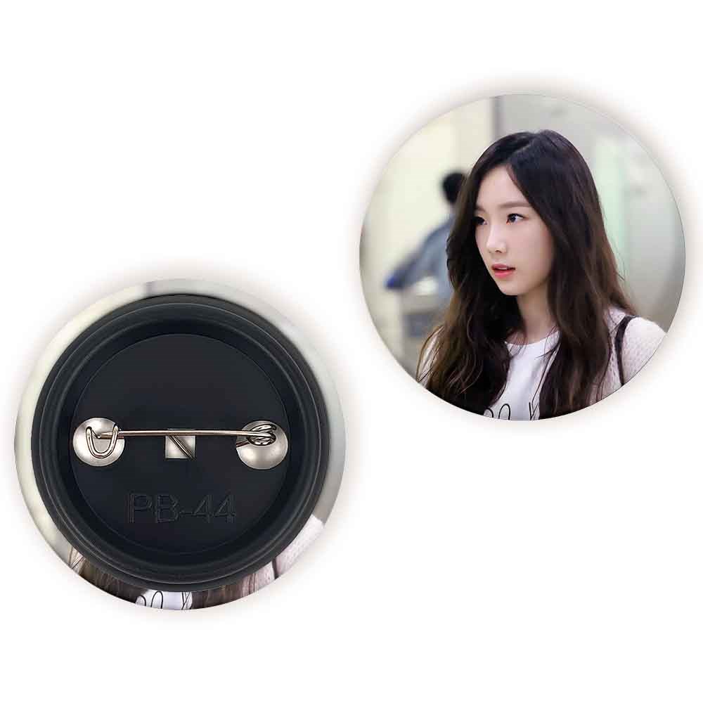 پیکسل 44 میلی متری تهیون گروه گرلز جنریشن Girls Generation خندالو با روکش سلفون حرارتی مات مخملی ضدخش و قطعه پشتی رنگی تولید شده است.پلاستیکی پشت پیکسل با سوزن یک تکه ثابت و بدون لغزش و جا به جایی، ایستایی بسیار بهتری نسبت به پشتی فلزی پیکسل دارند که این مهم در تولید این محصول نیز رعایت شده است.