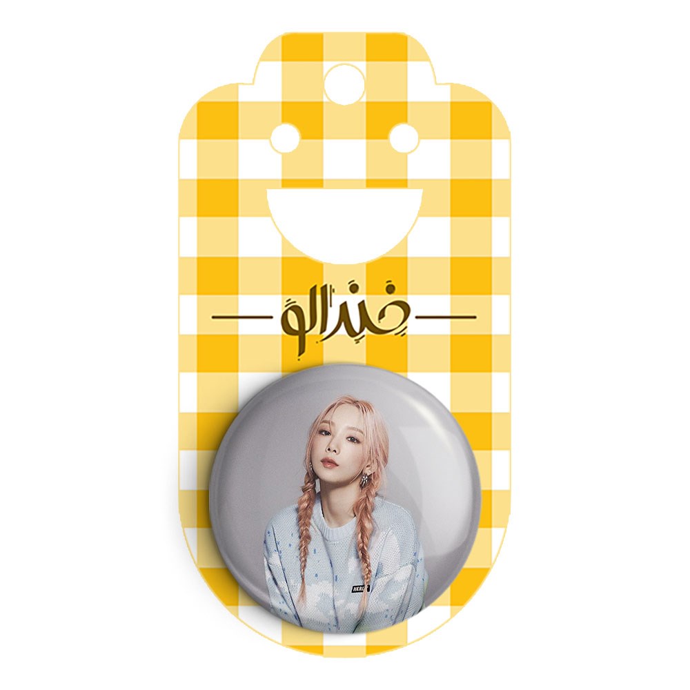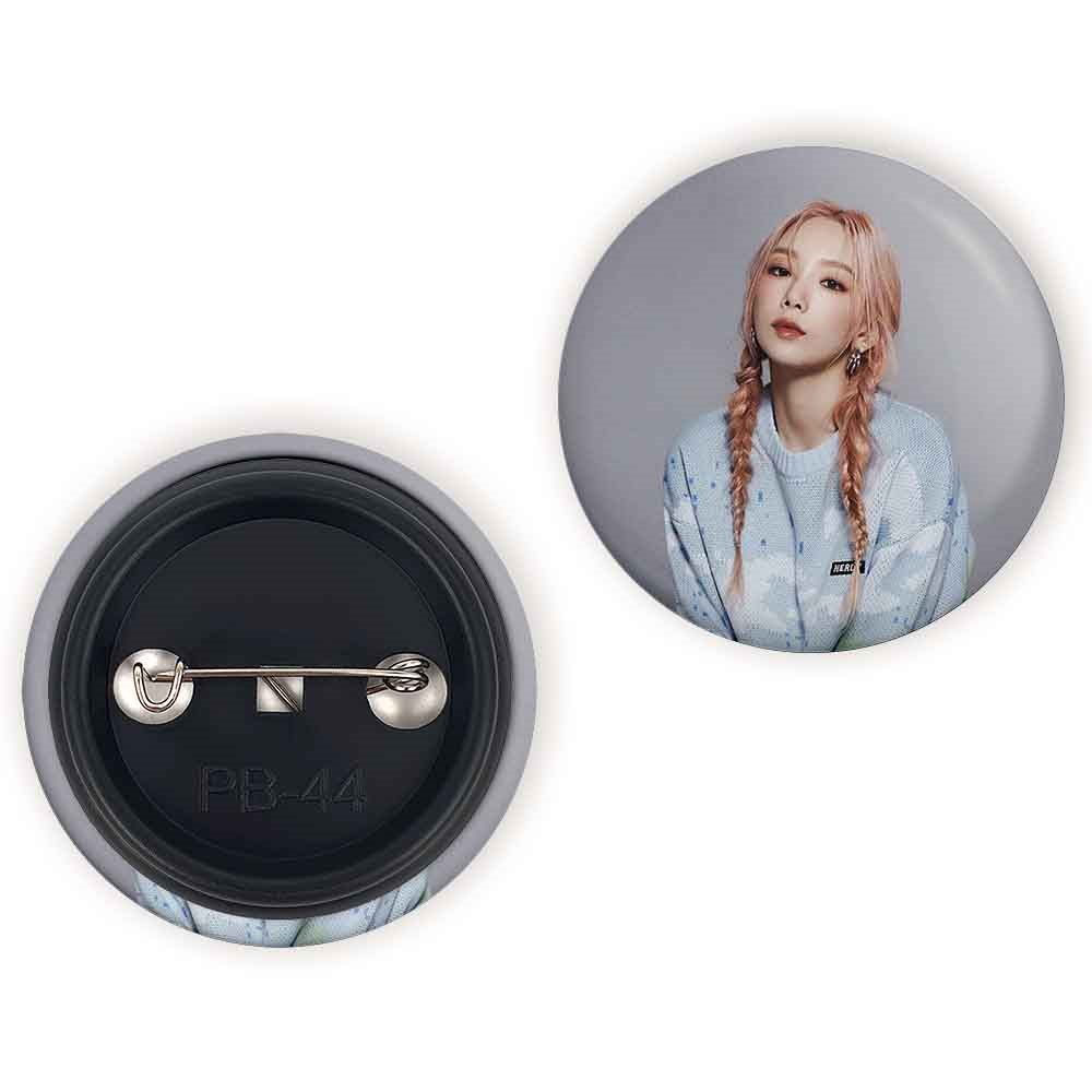 پیکسل 44 میلی متری تهیون گروه گرلز جنریشن Girls Generation خندالو با روکش سلفون حرارتی مات مخملی ضدخش و قطعه پشتی رنگی تولید شده است.پلاستیکی پشت پیکسل با سوزن یک تکه ثابت و بدون لغزش و جا به جایی، ایستایی بسیار بهتری نسبت به پشتی فلزی پیکسل دارند که این مهم در تولید این محصول نیز رعایت شده است.