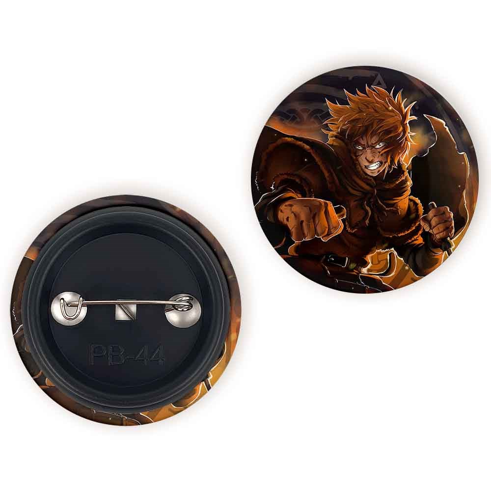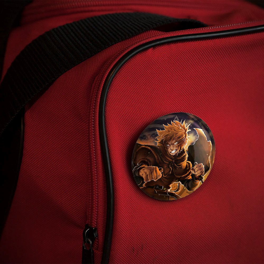 پیکسل 44 میلی متری تورفین انیمه حماسه وینلند Vinland Saga خندالو با روکش سلفون حرارتی مات مخملی ضدخش و قطعه پشتی رنگی تولید شده است.پلاستیکی پشت پیکسل با سوزن یک تکه ثابت و بدون لغزش و جا به جایی، ایستایی بسیار بهتری نسبت به پشتی فلزی پیکسل دارند که این مهم در تولید این محصول نیز رعایت شده است.