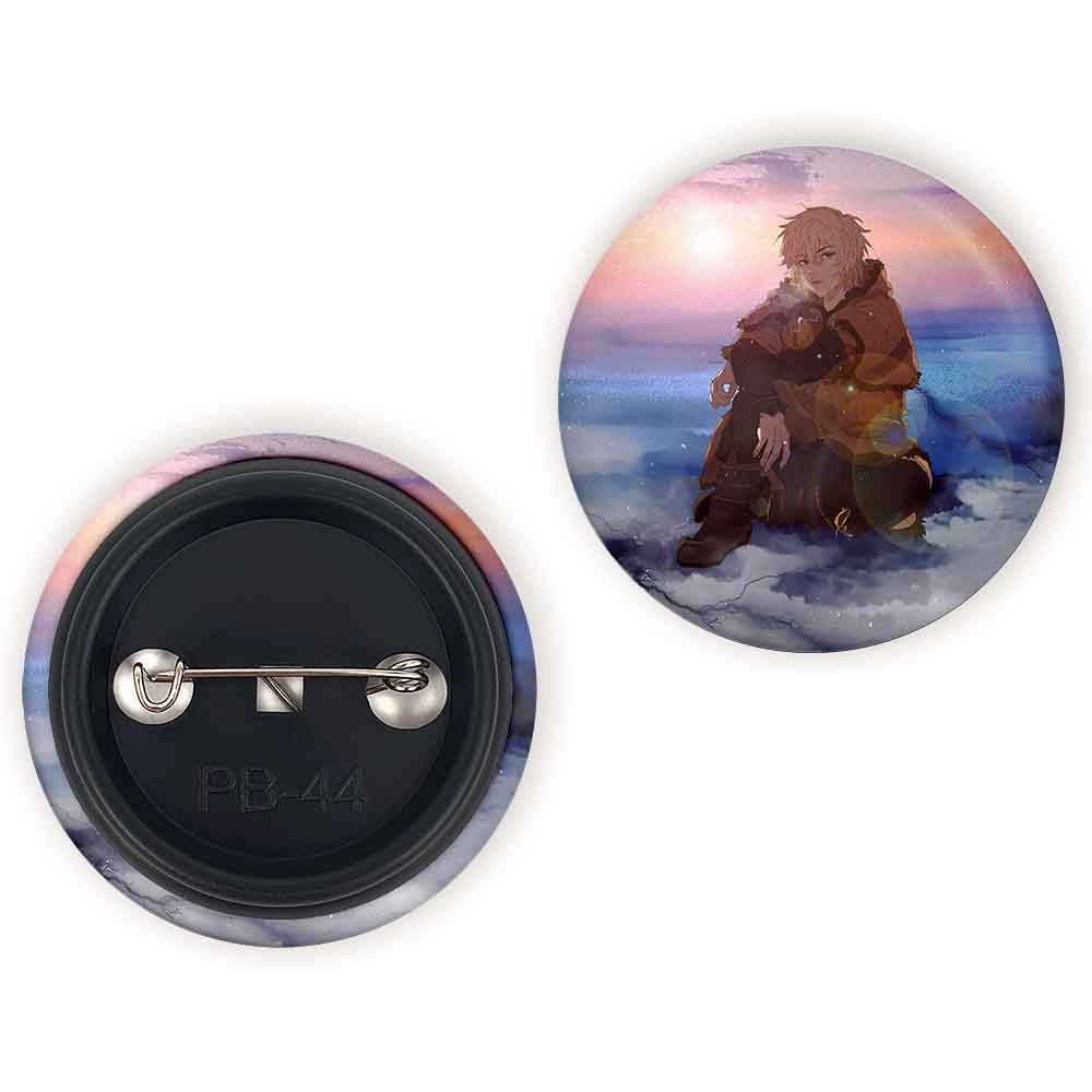 پیکسل 44 میلی متری تورفین انیمه حماسه وینلند Vinland Saga خندالو با روکش سلفون حرارتی مات مخملی ضدخش و قطعه پشتی رنگی تولید شده است.پلاستیکی پشت پیکسل با سوزن یک تکه ثابت و بدون لغزش و جا به جایی، ایستایی بسیار بهتری نسبت به پشتی فلزی پیکسل دارند که این مهم در تولید این محصول نیز رعایت شده است.