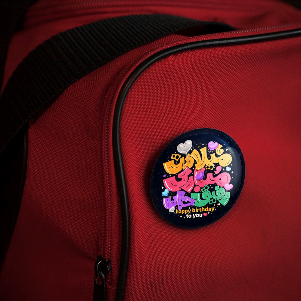 پیکسل 44 میلی متری تولد خندالو با روکش سلفون حرارتی مات مخملی ضدخش و قطعه پشتی رنگی تولید شده است.پلاستیکی پشت پیکسل با سوزن یک تکه ثابت و بدون لغزش و جا به جایی، ایستایی بسیار بهتری نسبت به پشتی فلزی پیکسل دارند که این مهم در تولید این محصول نیز رعایت شده است.