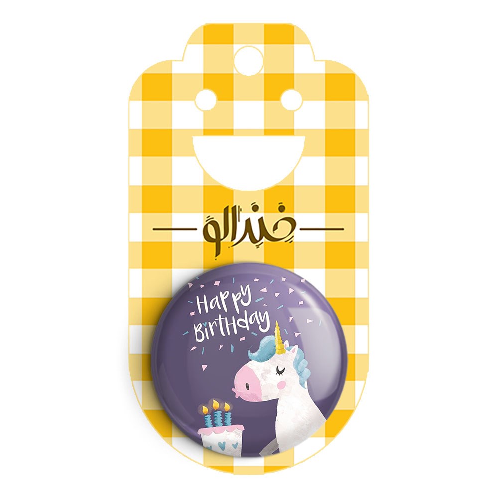 پیکسل 44 میلی متری تولد خندالو با روکش سلفون حرارتی مات مخملی ضدخش و قطعه پشتی رنگی تولید شده است.پلاستیکی پشت پیکسل با سوزن یک تکه ثابت و بدون لغزش و جا به جایی، ایستایی بسیار بهتری نسبت به پشتی فلزی پیکسل دارند که این مهم در تولید این محصول نیز رعایت شده است.